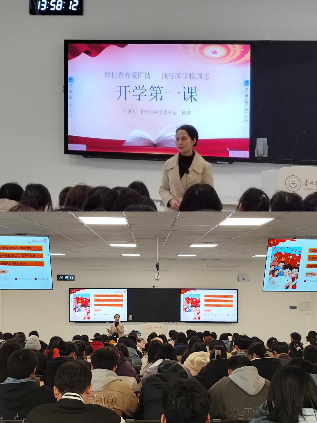 杨英对同学们提出了要求,一是要坚持学以致用,做习近平新时代中国特色社会主义思想的坚定笃信者;二是要坚定理想信念,做新时代的奋斗者;三是要树立文化自信,做中国优秀传统文化的传承者;四是要筑牢思想防线,做国家安全和民族团结的捍卫者;五是要坚持理性平和,做具有开放胸襟和世界眼光的理性爱国者。