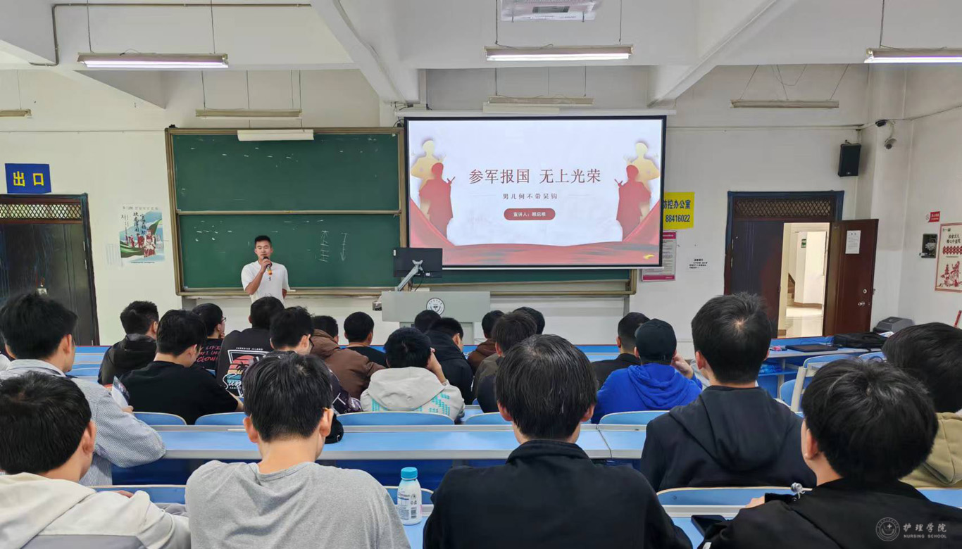 本次动员会,特别邀请学工部工作人员顾启根主讲。作为beats365毕业生,他在2021年毕业时响应国家号召,积极参军入伍。作为学长,他围绕应征入伍的基本条件、基本流程、优惠政策等方面,分享了自己应征入伍的心路历程以及入伍期间的特殊经历,当场播放了征兵宣传片,他鼓励全体男同学应当不负青春,不负韶华,参军入伍,保家卫国。
