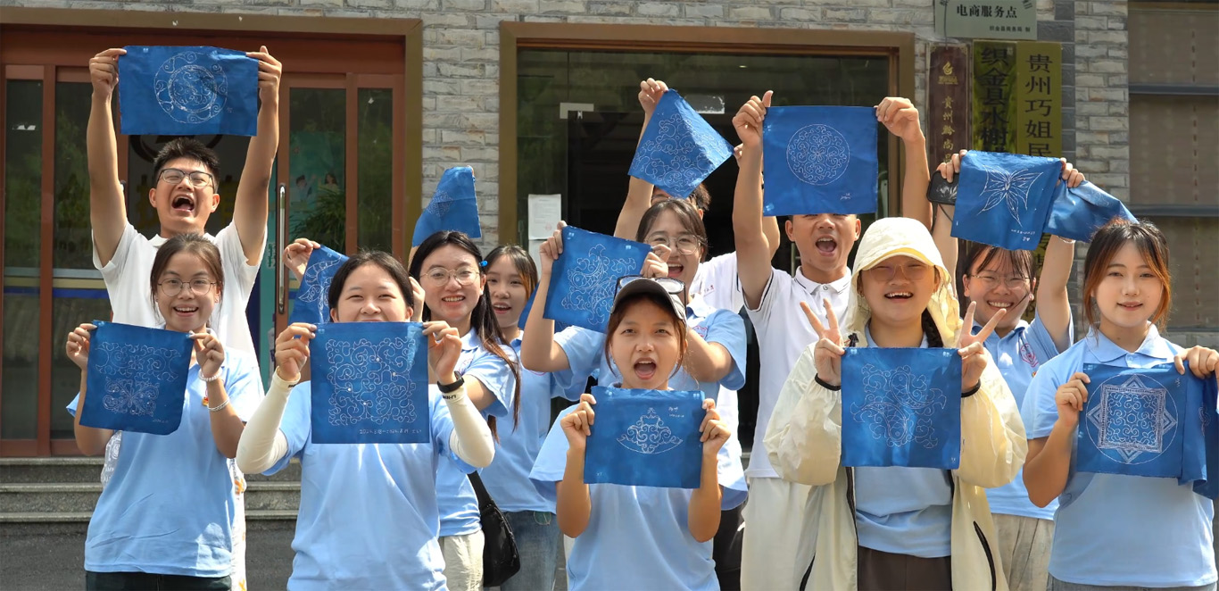 8月18日至19日,实践队在苗寨非遗传承人的指导下,沉浸式参与了蜡染和苗绣的全过程,了解蜡染和苗绣的来源、用途和寓意,体会用蜡笔勾勒图案的精细手法、感受苗绣丝线与绣布交织的独特工艺,此次学习让实践队对苗乡非遗文化有了更深刻的认识,队员们真切的感受到了苗韵的古色魅力。隔天,实践队成员们为穿着苗绣的苗族家庭拍摄全家福,并精心准备了相框,为村民们送去合家美满的真诚祝愿。