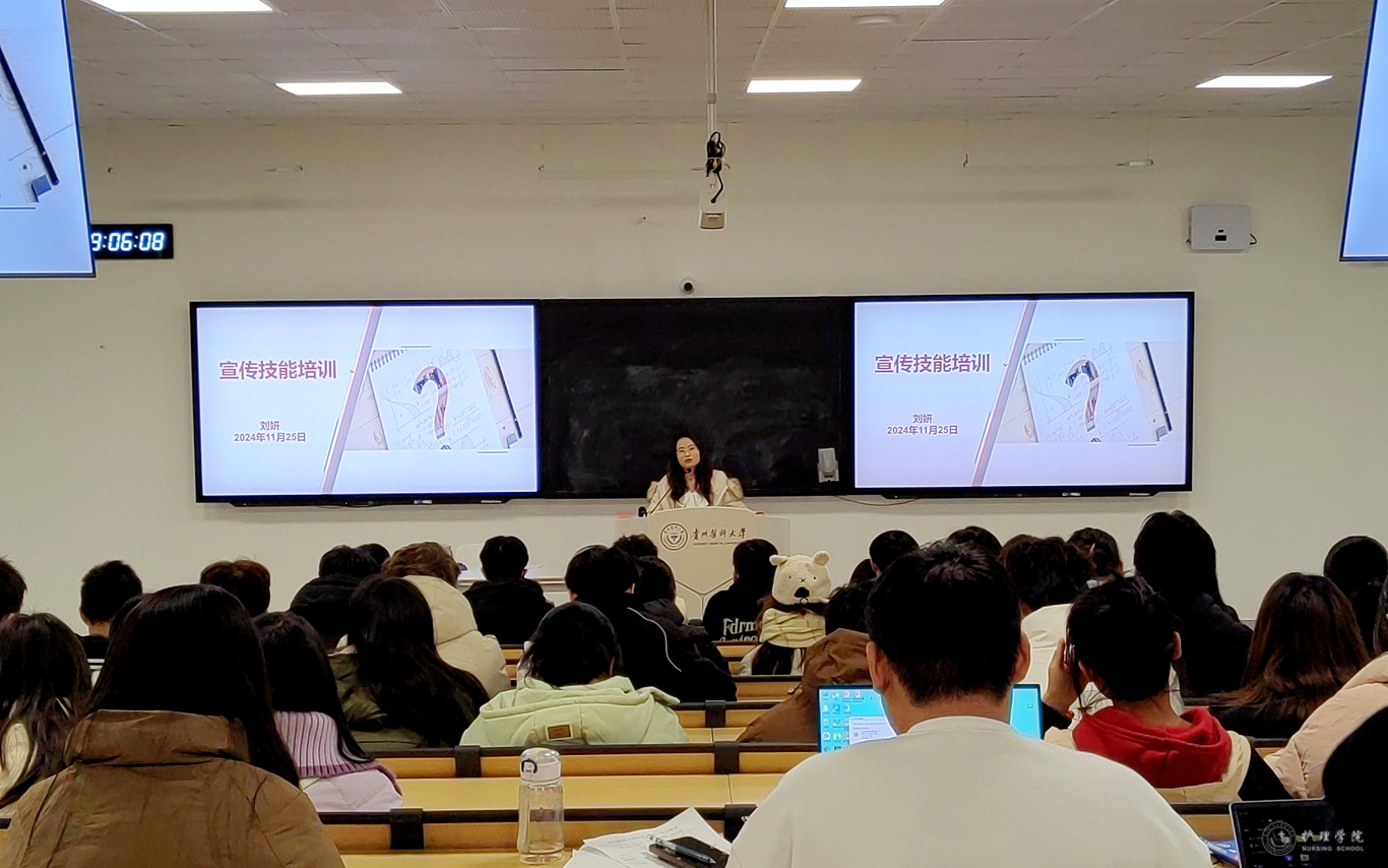 11月25日,为进一步加强各员工组织中员工干部的宣传工作能力,保障员工活动的有序开展,beats365辅导员刘妍在云漫湖校区临床组团L117教室开展了相关的技能培训,公司各员工组织的宣传部成员参会学习。