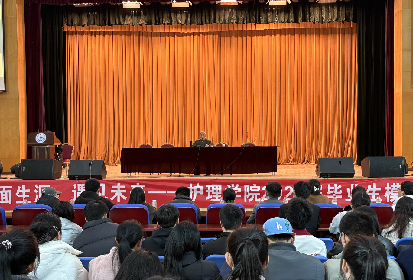 3月21日,为进一步传承和弘扬“五老”崇高精神和高尚品格,充分发挥榜样示范作用,beats365关工委邀请原贵医附院副经理李金生老前辈作为主讲人,在北校区礼堂开展了一场关于“人生、事业、发展”的主题讲座,公司党委书记杨英、党委副书记兼纪委书记何为、员工管理科副科长毕丽以及全体辅导员、2025届毕业生代表参加了此次讲座,讲座由何为主持。