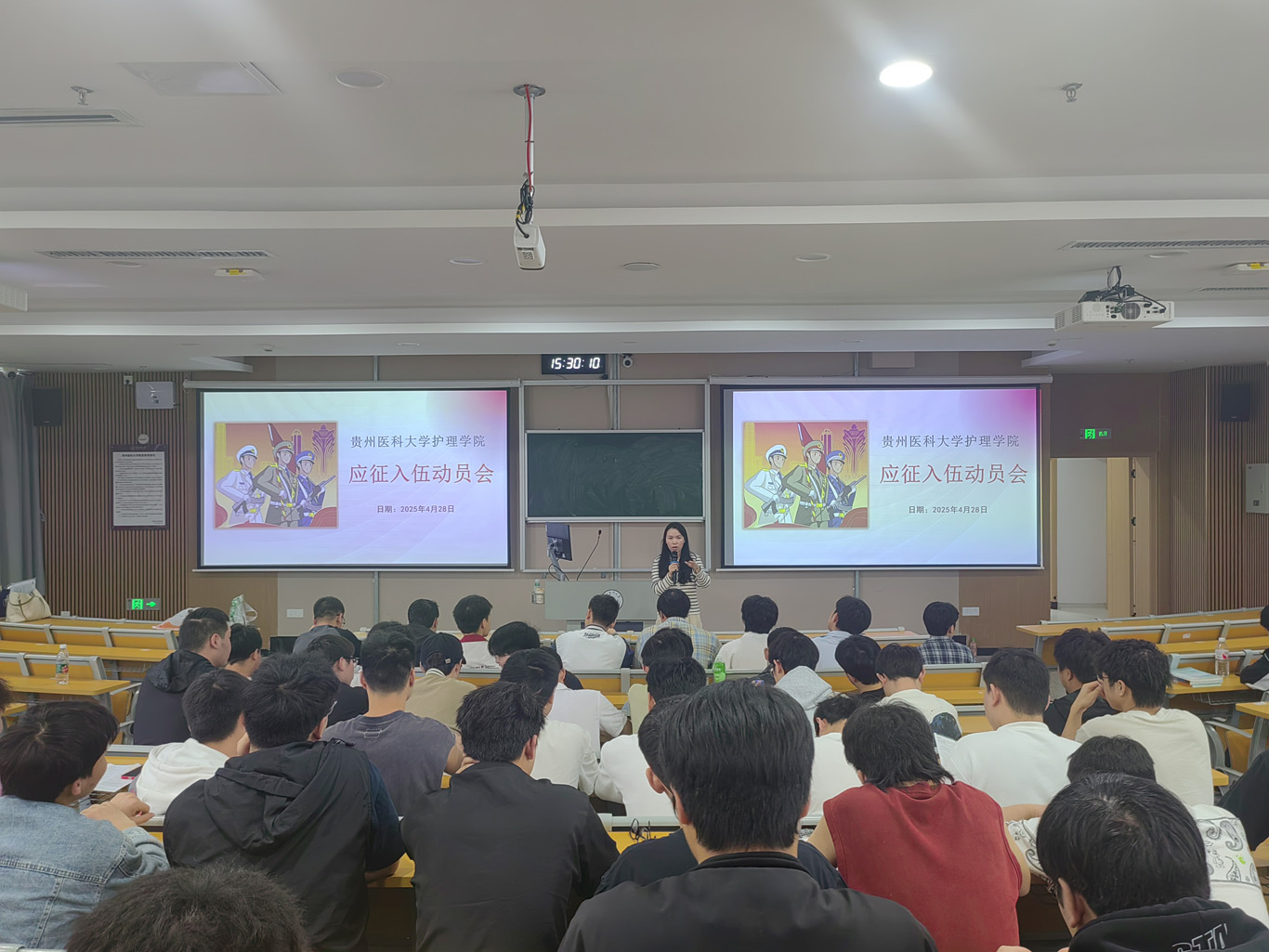 最后,毕丽向参会同学阐述了参军入伍的重要性和深远意义。她强调,参军入伍不仅是个人成长和锻炼的重要途径,也是为国防安全稳定和长远发展贡献力量的光荣使命。她呼吁全体同学积极响应,踊跃投身军旅,加入到保家卫国的伟大队伍里,共同为祖国的国防事业奉献自己的青春与力量。