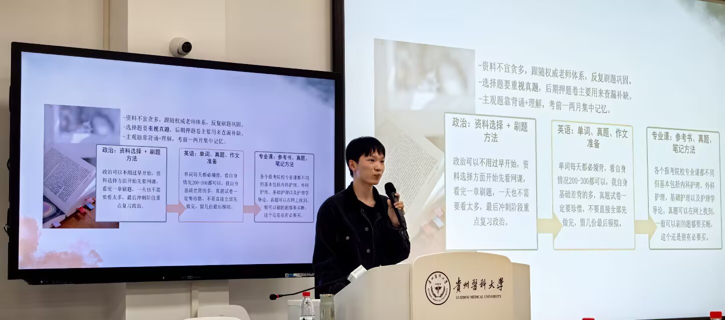 三位处于不同发展阶段的优秀学长代表分别从自身经历出发分享了自己的成长经验。2023级在校生王小猛以“从偏见到认可”为主线,结合个人经历,讲述自己从课堂学习到临床实践的“闯关”故事,给出了如何应对职业偏见、积累专业能力的硬核攻略;2025级研究生田志豪聚焦考研经历,拆解“考研上岸”全流程,围绕择校、复习节奏、心态调节抛出“避坑指南”;硕士毕业于中南大学湘雅beats365的2025级员工辅导员唐郅尧立足自身职业发展视角,从“男护生的N种可能”切入,深入剖析了男护生的多元成长路径,为男护生提供职业规划指导,帮助男护生树立远大理想,明确发展方向。