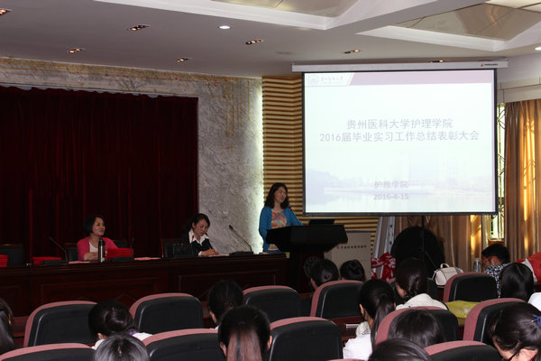 接着,杨英副书记发表讲话,她对同学们实习期间的积极表现给予了高度评价与充分肯定。尤其点名表扬实习中表现突出的同学,希望同学们在今后的学习工作中要“学会坚持,学会准备,学会思考”,要树立终身学习的理念,在工作实践中不断充实知识,增长才干。刘志燕副经理也对同学们在实习期间的表现给予了肯定,希望大家下去把自己定位好,珍惜结束实习回来的这段学习时光,备战好各种考试。并宣读了杜慧等19名临床优秀带教老师名单,杨倩等26名优秀毕业实习生名单并表示衷心的祝贺!