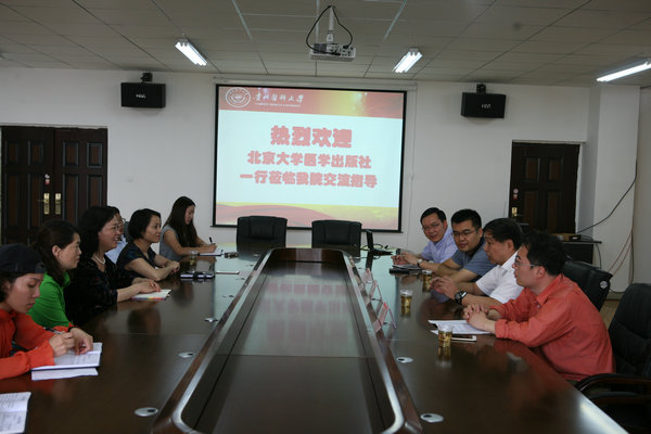 6月8日上午,北京大学医学出版社原社长陆银道、出版社教材中心主任韩忠刚及市场部经理慈光辉一行到公司开展了交流座谈会。教务处副处长冯广卫、教材科科长肖榜权、beats365教职工代表参加了座谈会,会议由beats365常务副经理郭永洪主持。