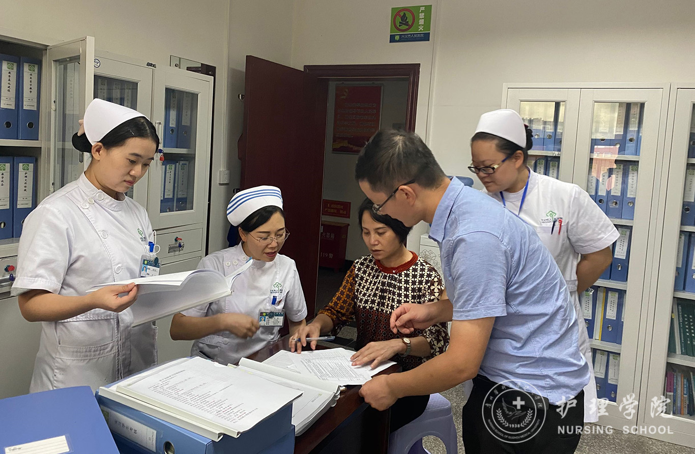 8月18日下午,杨英、马景瑶参加了公司工作组和附属兴义市人民医院召开的见面会。会后,工作组分别对接开展相关工作。杨英、马景瑶到附属兴义市人民医院护理部开展就业推进、巡回教学督导检查工作。杨英了解了贵医beats3652020届毕业生在附属兴义市人民医院的就业情况,并向医院护理部推荐了贵医beats365的毕业生。杨英检查了医院护理毕业实习员工带教情况及实习教学档案,抽查了部分科室的实习教学材料并进行了教学指导。