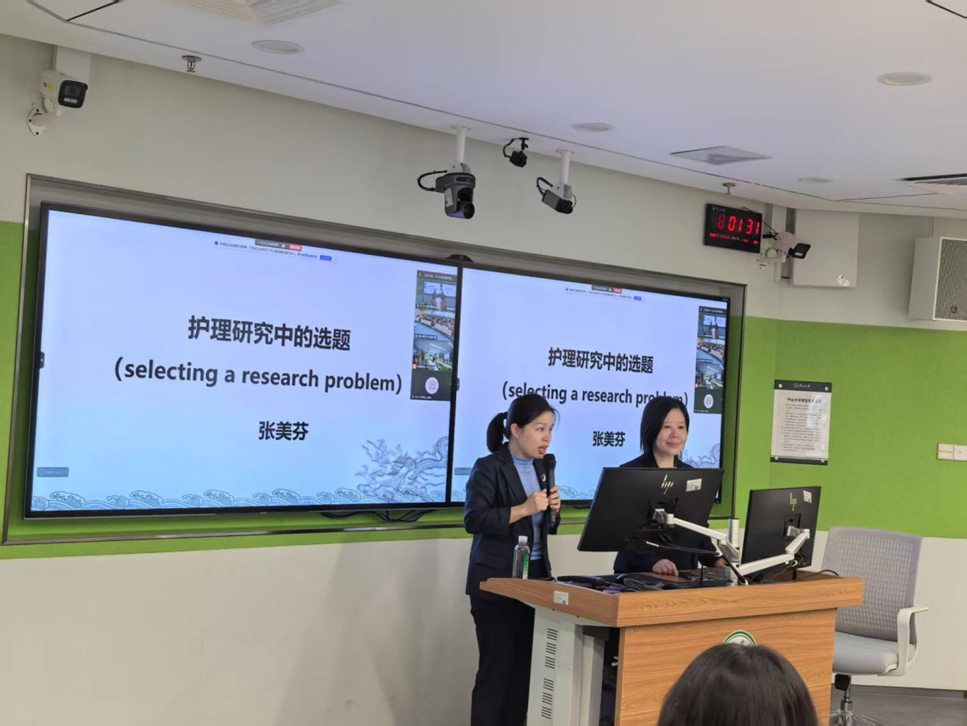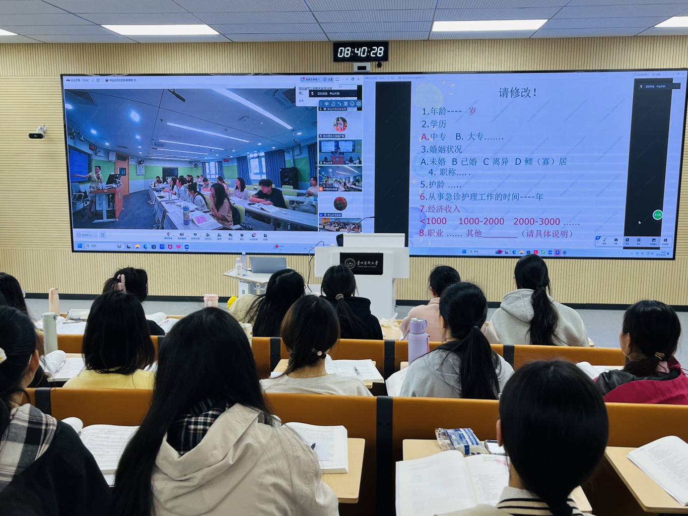 此次活动中中山大学张美芬教授、刘可副教授、张利峰副教授分别就“护理研究选题”“资料收集法”“研究报告的书写”,同步为中山大学beats3652023级22名同学和beats3652022级152名进行授课。beats365官网亚洲网页版护理学基础教研室副主任邹惠美及护理学研究教学团队教师冯安丽、卓英权老师作为主要参与教师共同协助同步课堂的开展。