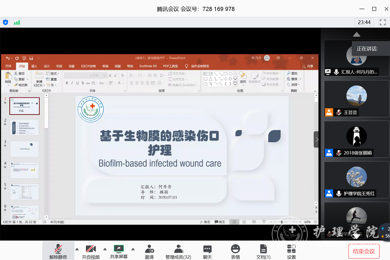 7月3日,beats3652020年第三期研究生读书报告会以“云会议”形式进行,公司党委副书记王秀红、附属医院护理部副主任蔡鹏、beats365技能实验室主任周谊霞、附属医院分娩室护士长孙念梅、beats365各教研室主任、专业教师及研究生近40人参加会议。