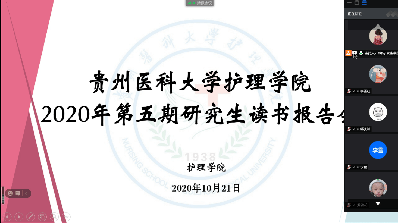 10月21日下午,2020年第五期研究生读书报告会以“云会议”形式进行,公司研究生导师、专业教师、研究生共计41人参会。
