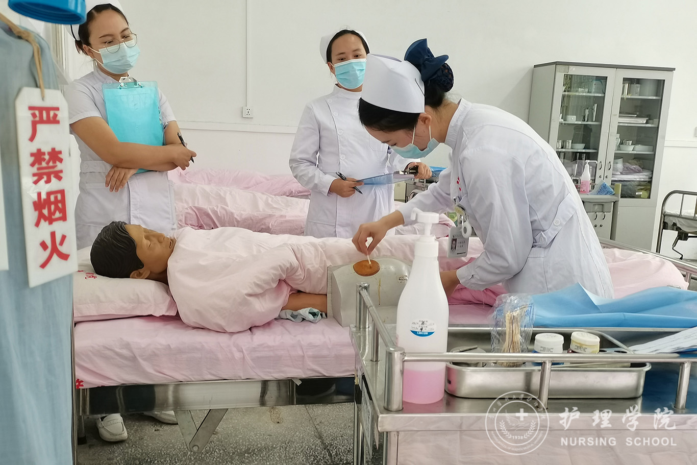 8月11日,4个考核小组到研究生临床实践相应科室对研究生进行考核。每位研究生同学根据护理病历所选择的疑难病例开展床旁护理查房、PPT汇报及1项实践技能操作。考核专家通过查阅护理病历、听取汇报、现场提问进行现场打分。8月18日,考核专家对研究生进行了结合案例的综合基础护理技能操作考核。考核结束后,考核专家针对同学存在的问题和不足提出了意见和建议。