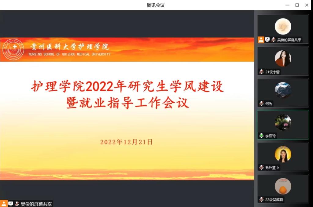 2022年12月21日,为加强研究生对学术诚信与学术道德的理解和认识,树立良好学风,做好研究生职业发展规划。beats365通过腾讯会议召开了研究生学风建设暨就业指导工作会议。beats365经理兼附属医院护理部主任李亚玲、公司党委副书记兼纪委书记何为、附属医院呼吸与危重症医学科姚丽、附属医院护理部唐帆、公司研究生辅导员及全体研究生参加了会议,会议由何为主持。
