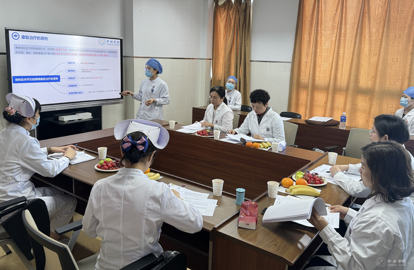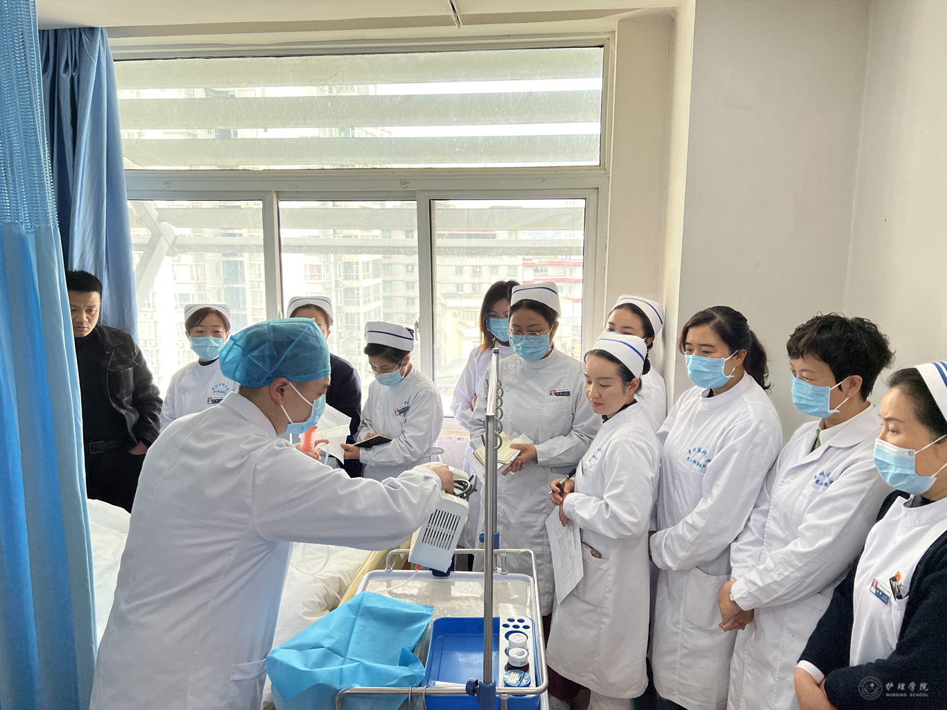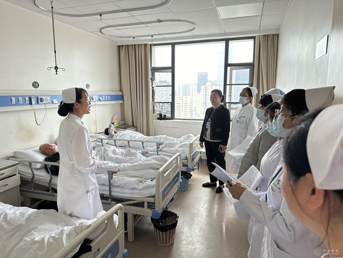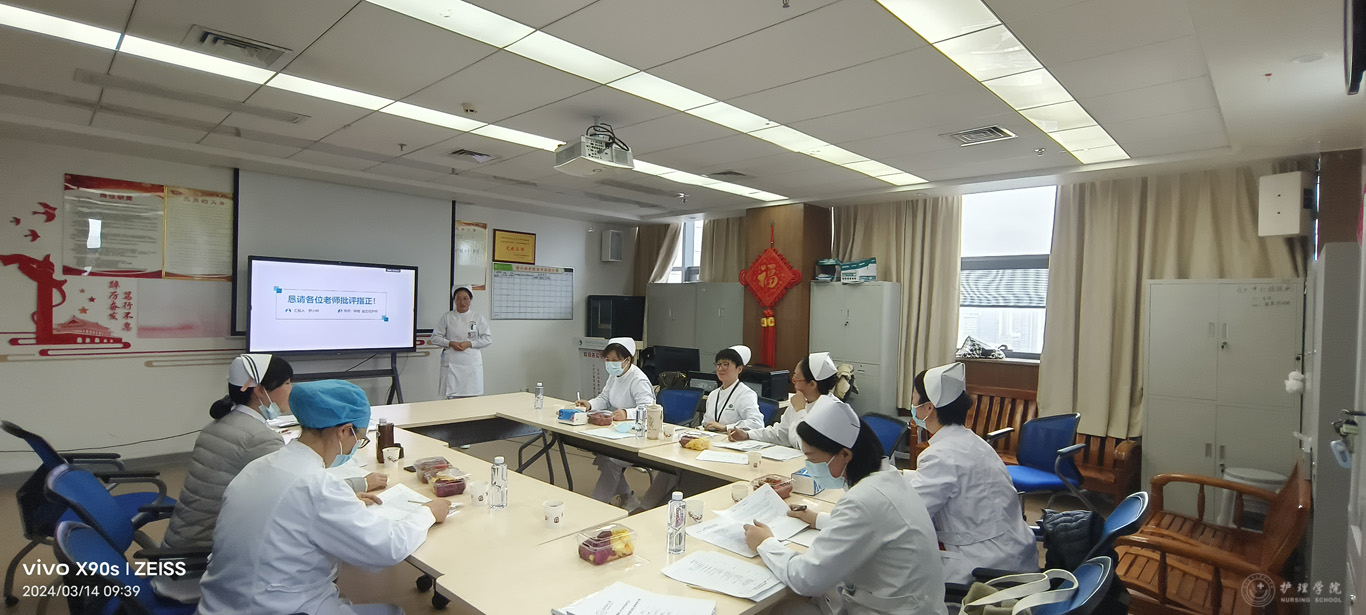 为使考核实现同质化,公司组织了考核前培训会,对考核安排、评分细则、工作中的注意事项等进行解读并提出要求。公司研究生教育督导委员全程进行督导。考核主要包括英文文献汇报、护理查房和迷你临床演练评估(Mini-CEX)等三个部分。考核突出临床思维、循证能力、专科操作技能及健康宣教等护理实践能力。