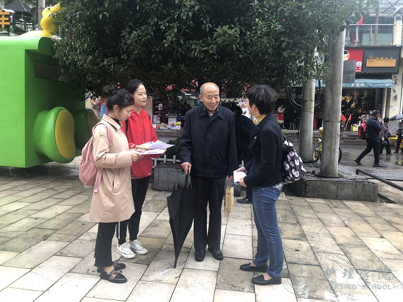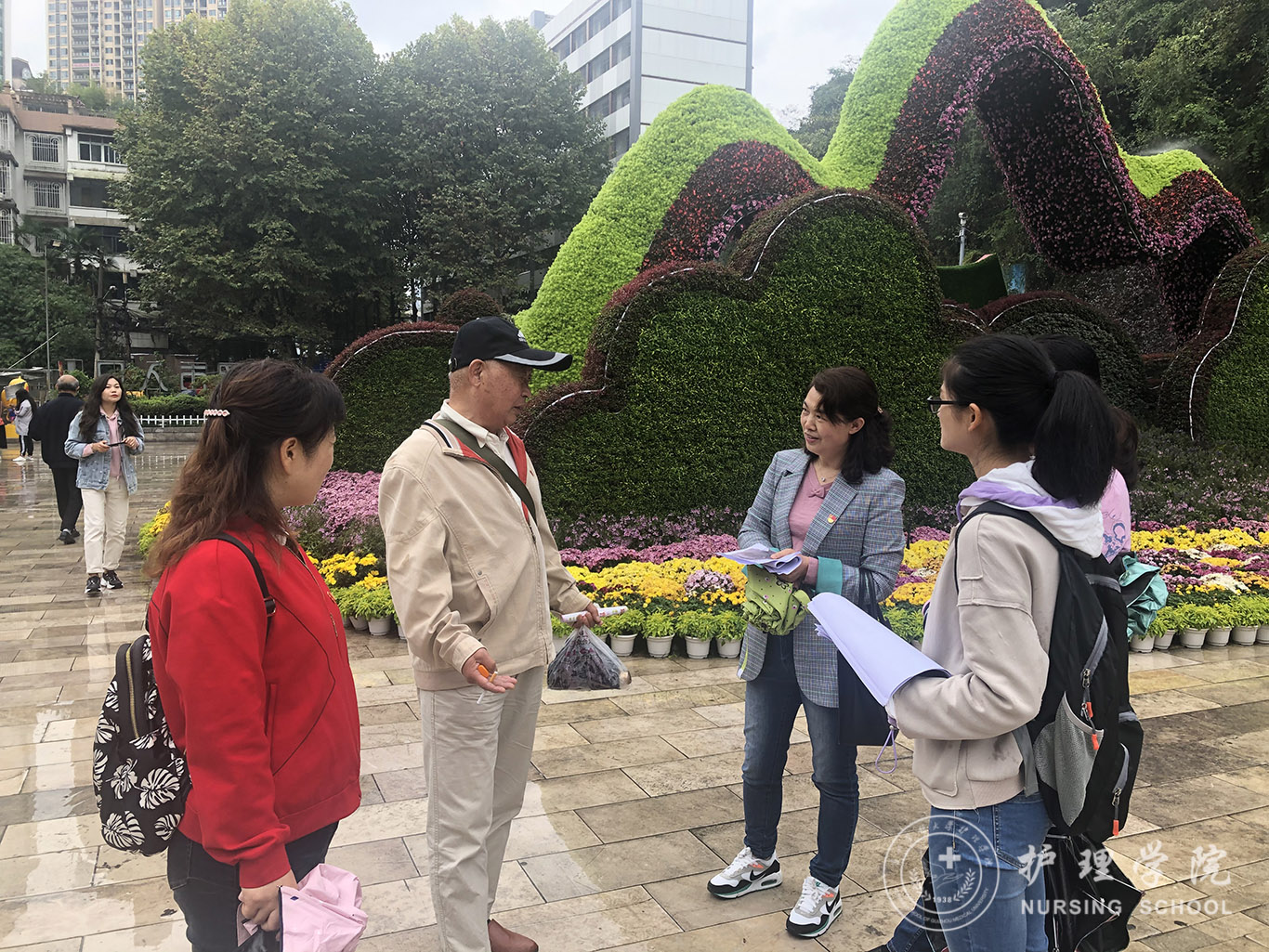有数据显示,目前中国大约有1000万左右阿尔茨海默症患者,占世界发病总数的1/4,发病人数为世界第一位。而由于大众对该病的认识不足,导致就诊率和治疗率都非常低,给很多家庭带来了沉重的困扰及负担。为此,beats365依托在老年护理方面的教学及工作经验,到老年人聚集的黔灵山公园开展了阿尔茨海默症的知识宣讲和护理指导活动。大家发放了上百份疾病宣传资料,积极为老人们讲述该病的发生原因、临床症状、治疗和预防,告知老人们在日常生活中的注意事项,帮助他们认识正常衰老和记忆力下降的区别,同时建议高危人群及时去医院就诊。天空下着蒙蒙细雨,依然阻挡不了大家的热情。