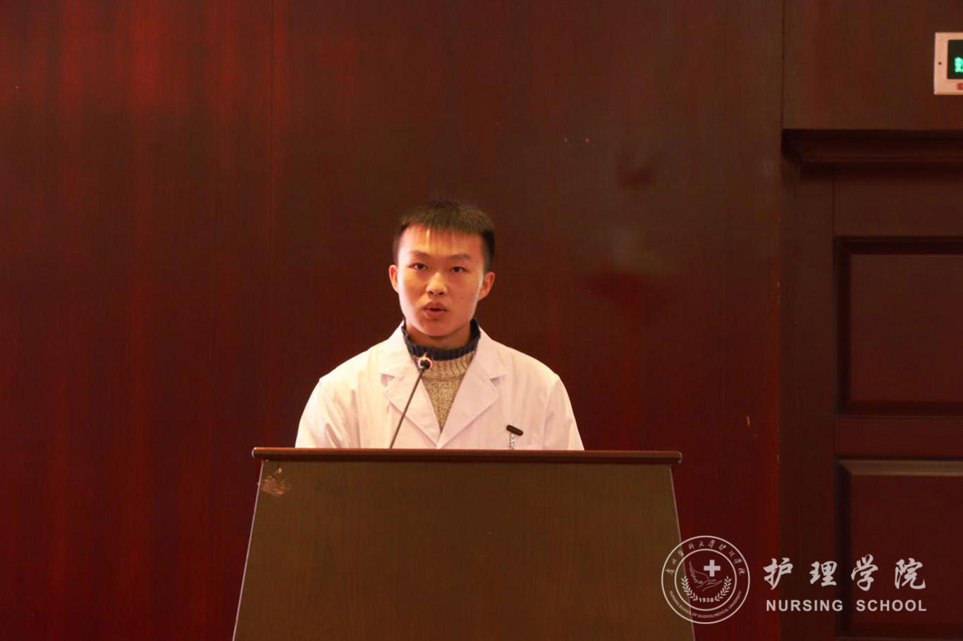 成立大会结束后,男护生协会的首秀活动——“不忘初心、牢记使命”走进“男”丁格尔员工事迹报告会拉开帷幕。本次报告会邀请到beats3652009届优秀员工,贵州省人民医院急诊留观输液中心护士长杜伟和护理学2018级唐郅尧同学作为演讲嘉宾。杜伟分别从“我是谁?我从哪来?我要做什么?”三个方面讲述自己的学业、事业经历,向同学们展示了作为一位男护士在学习中的应该做到全面发展,提高专业归属感。以一个男护士在临床工作中运用自身独特的思维模式和对工作的热爱为维护健康、促进健康做出的努力,并因此成就自己,实现了自我价值。由此激励同学们热爱护理学、助产学专业,有为才能有位,有为才能沿着梦想之路前行。唐郅尧结合自身学习经历的做了经验交流发言。他表示我们要微笑着面对困难,坚持就是胜利。两位嘉宾的演讲引发了现场师生的共鸣,演讲过程中多次响起热烈的掌声。
