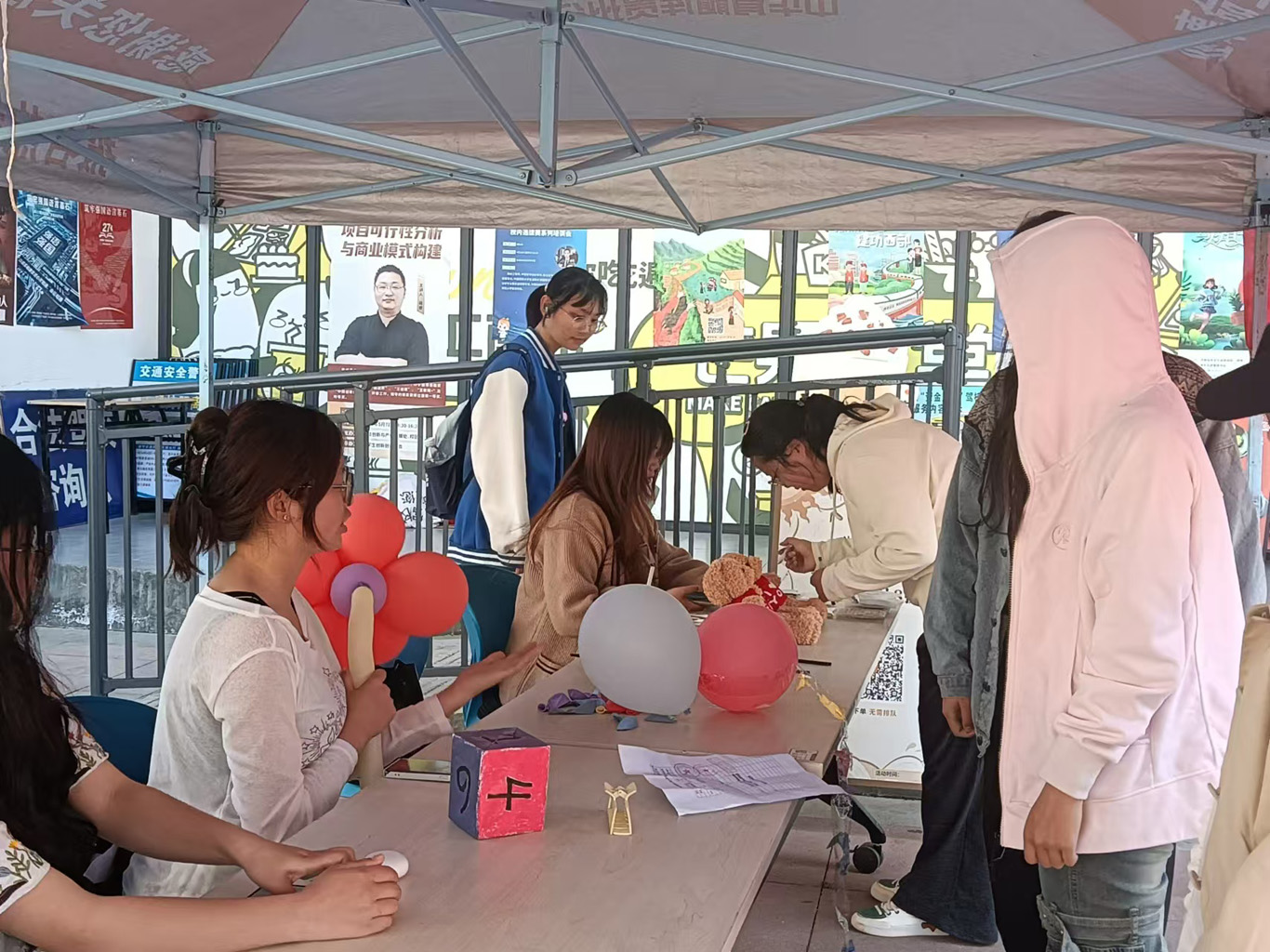 活动共分为三个部分,同学们任选其一完成即可兑换奖励。在“快问快答”活动中,参与者单人抽取纸条,在规定时间内回答纸条上的问题,连续答对3题即可获取小礼品;在“压力气球人”活动中,两人一组,一人在气球上写下压力源,另一人用身体部位(不可用手)压爆气球;在“夹棉花球”挑战活动中,通过双人合作的方式锻炼彼此之间的默契度,通过比拼夹取数量来判断胜负。
