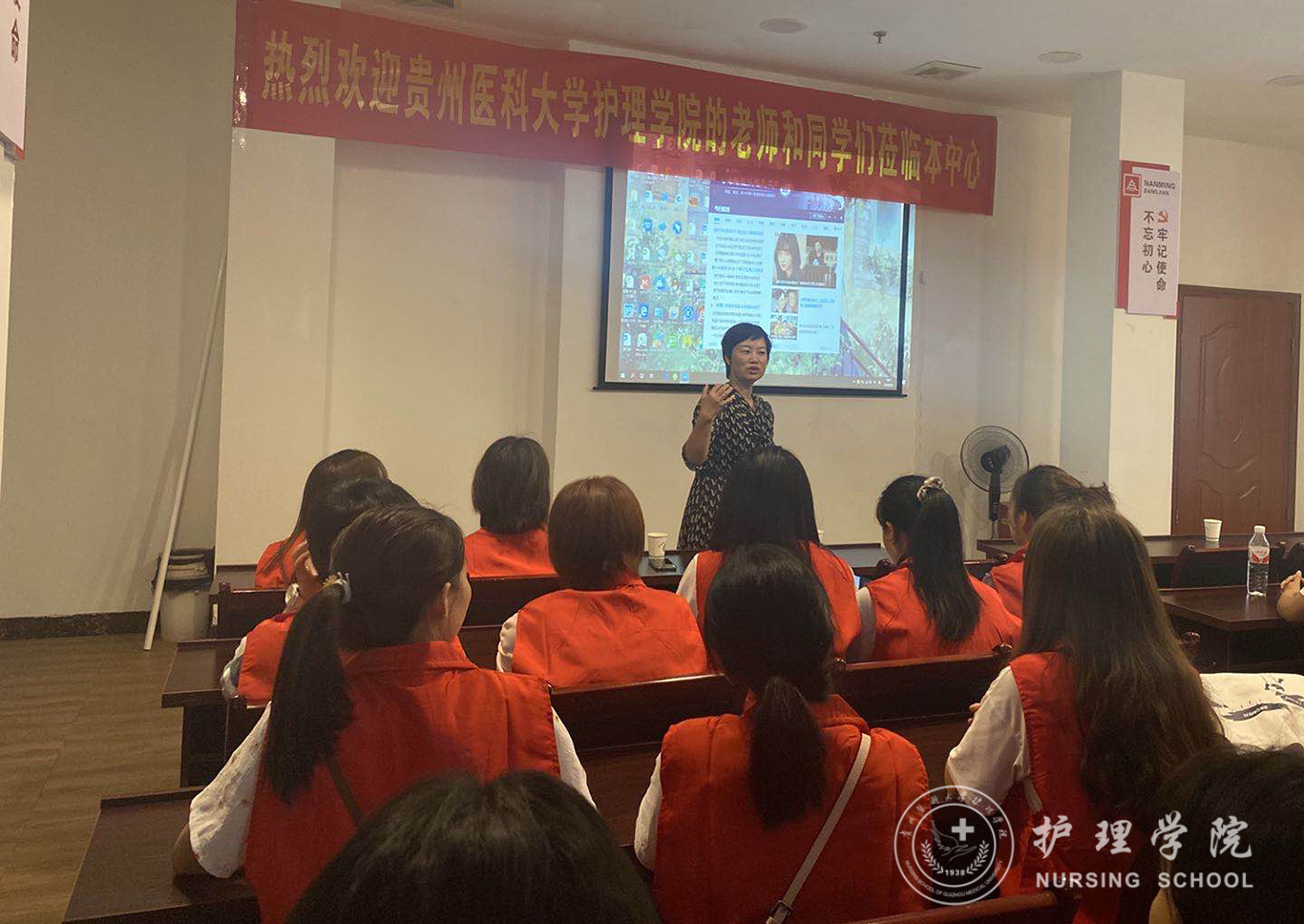 上午9时整,简短而热烈的活动启动仪式正式开始。首先主持人熊吴燕介绍了参加仪式的领导和来宾,接下来中心负责人游世先转达了中心上级主管部门贵阳钢厂职工医公司党总支书记丁晓燕及经理龙奕对活动开展的祝贺和希望,并以PPT形式给大家介绍了日照中心的创建发展概况。熊吴燕从专业学习的角度给同学们讲述了活动的意义。她说,我们在中心开展志愿服务,同时也是《老年护理学》见习教学内容之一,希望同学们在活动中认真思考,探索问题,发现问题,并找到解决问题的方法,学好这门课程,更好的为老年人服务。最后,王秀红副书记对贵阳钢厂职工医院及中心领导的大力支持表示衷心感谢,并从珍惜、坚持、安全三个方面对同学提出要求。她说,医学人文关怀素养是医员工非常重要的专业素养。人文关怀素养的培养要立足于服务社会,在结合专业知识运用的志愿服务中提升和实践,希望同学们珍惜宝贵的学习实践机会,通过每个周末课余在中心的志愿服务去领悟、去提升自身专业能力和人文关怀素养,最终成长为一名优秀的人民健康卫士。其次,志愿服务和专业学习都是需要长期坚持才能最终开出绚丽花朵的事情,同学们牺牲休息时间来中心陪伴老年人、增加对专业知识的认知和了解社会是需要有所付出的,希望同学们能够克服困难,坚持高标准自觉参与完成任务。最后,希望同学们遵守纪律、服从管理,注意自身安全和老人安全,确保学有所获。