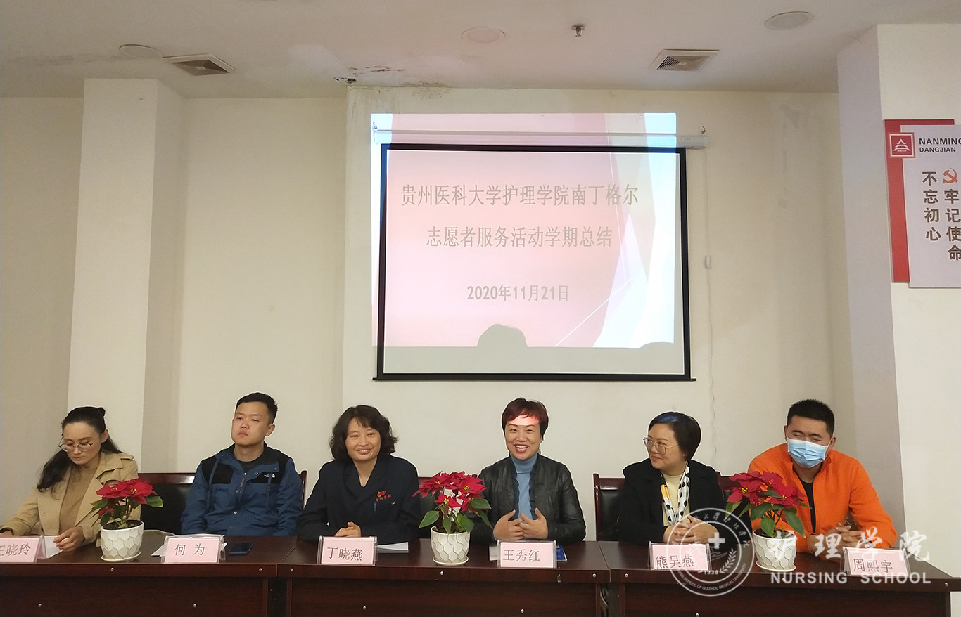 11月21日上午,beats365暨中国南丁格尔志愿服务队beats365官网亚洲网页版分队“为老志愿服务”学期总结会议在贵阳市南明区油榨街道晚霞彩带老年人日间照料中心举行。贵钢医公司党总支书记丁晓燕,公司党委副书记何为,公司党委委员、副经理、中国南丁格尔志愿护理服务队beats365官网亚洲网页版分队队长王秀红,中心经理周熙宇,护理学基础教研室副主任熊吴燕,beats365分团委副书记王晓玲,2018级护理学、助产学同学代表参加了此次会议,会议由王晓玲主持。