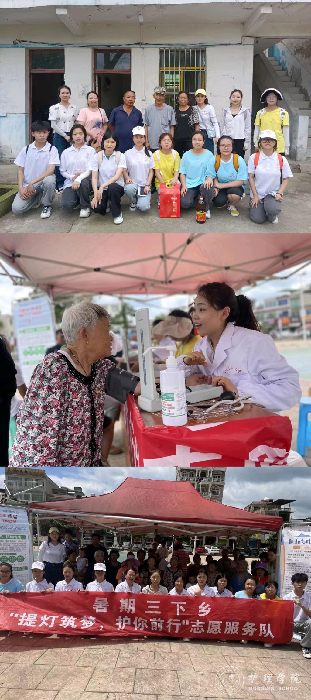 青衿之志,履践致远,就像习近平总书记所说的那样:"广大青年既是追梦者,也是圆梦人。追梦需要激情和理想,圆梦需要奋斗和奉献。"在此次“三下乡”社会实践活动中,各志愿服务队走出校园,走向社区、服务机构、农村等,深入基层群众,以护理学子热情饱满的精神面貌,认真负责的工作态度以及扎实过硬的专业本领为乡村振兴做出应有的贡献,彰显了护理学子的青年担当。各团队纷纷表示,通过此次活动深刻地认识到了老员工暑期“三下乡”社会实践的意义所在,希望将来能在奉献中担当使命、在历练中增长本领,努力投身健康中国行动,积极推动中国式现代化建设,在砥砺前行中,不断展现青年智慧、凝聚青年力量、传承青年使命,在为人民服务的事业当中绽放属于自己青春最绚丽的花朵。
