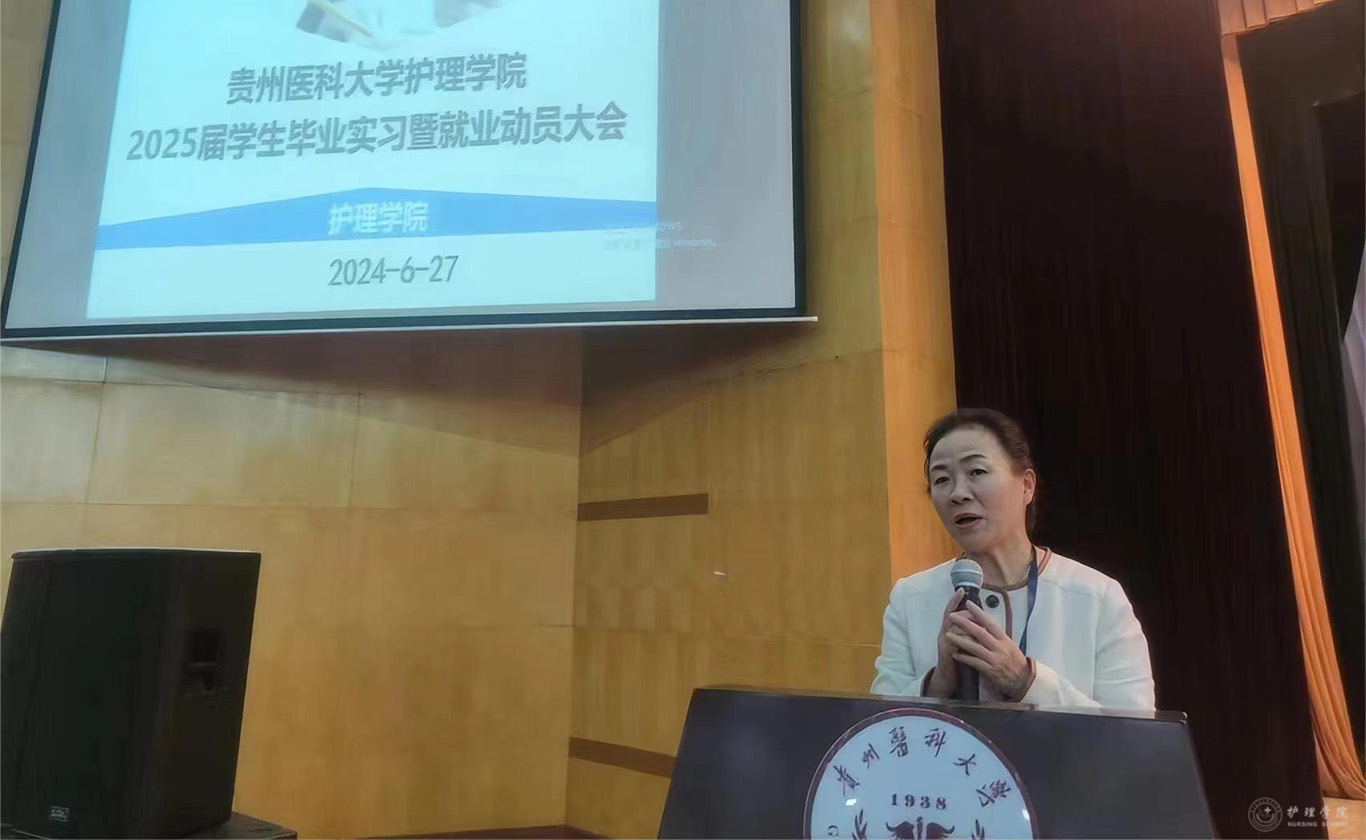 会议上,杨英为全体同学作动员讲话,她指出,全体同学应做到以下五点要求:一是端正实习态度,认真开展实习工作,切实担当护理工作者的神圣责任;二是严格遵守实习医院的规章制度及劳动组织纪律,审慎负责地对待护理工作,为患者提供高质量护理;三是树牢安全意识,规范护理操作,做好个人健康安全与职业健康安全;四是增强人文关怀,为患者提供有温度的护理;五是树立正确的就业观,了解就业形势和政策,为职业发展和未来就业奠定坚实基础。她强调,希望全体同学继承发扬南丁格尔精神,熟练掌握专业知识和技能,早日成为一名合格的护理工作者。