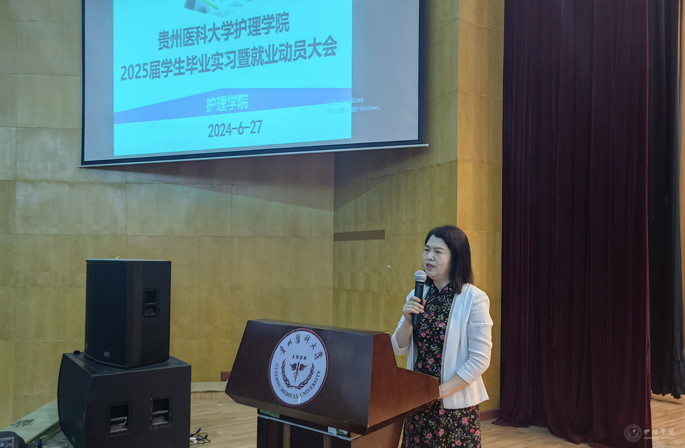 李亚玲为全体同学作临床实习指导,她指出,毕业临床实习是员工走向护理工作岗位前对所学的专业理论及技能的一次全面检验,希望全体同学珍惜实习时光,通过毕业实习提高素质,在实习中开阔眼界、锤炼自我,为未来的职业生涯打下坚实基础。
