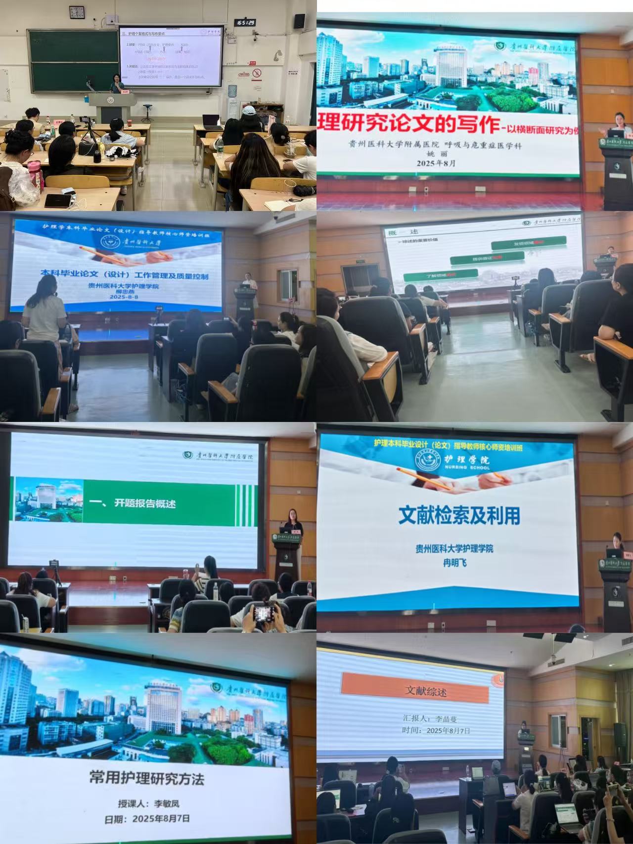 本次培训采用理论授课与工作坊相结合的模式,来自公司和附属医院的护理科研团队担任授课。培训内容涵盖护理研究概述、护理科研伦理、护理科研选题、开题报告的撰写、护理研究论文的写作等。同时解读了教育部及贵州省教育厅关于本科毕业论文抽检的相关政策、beats365本科毕业论文的实施细则,对论文指导工作流程管理及学术规范等核心环节进行了深入阐释和重点强调。在工作坊环节,通过以情景问题为导向的文献检索实操、员工综述示例及实习医院教师代表开题汇报来引导学员们如何通过科研方法来解决实际临床问题并规范撰写报告。