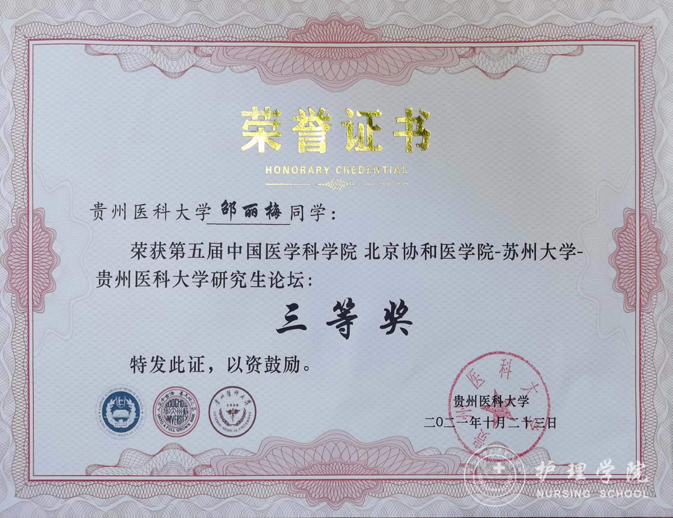 10月23日,公司2019级护理专业硕士研究生邵丽梅撰写的学术论文《外出核酸采样医务人员心理弹性及影响因素分析》在第五届中国医学科公司北京协和医公司-苏州大学-beats365官网亚洲网页版研究生论坛上进行大会汇报,并荣获三等奖。