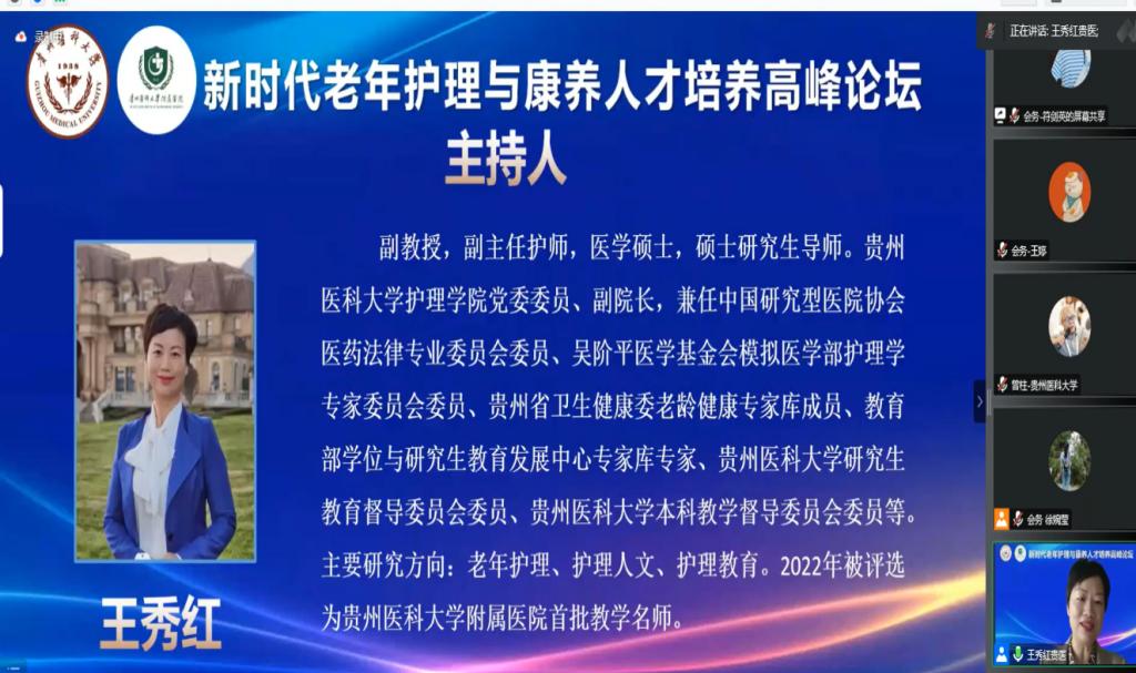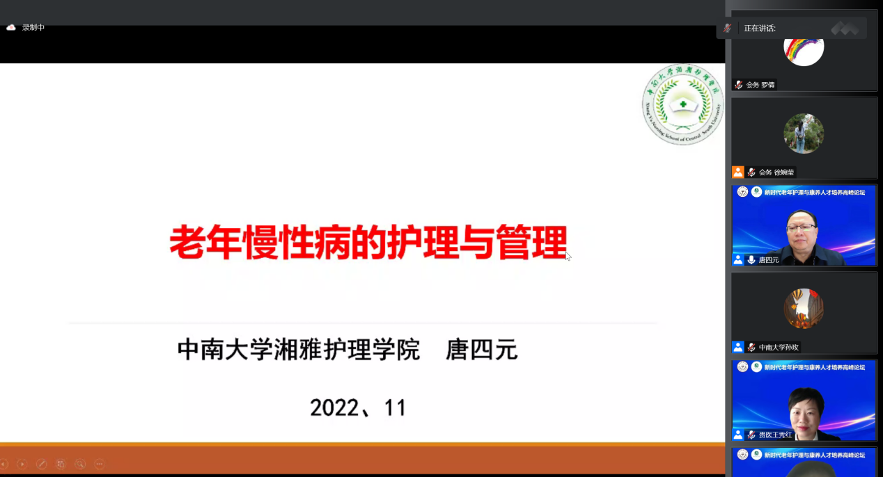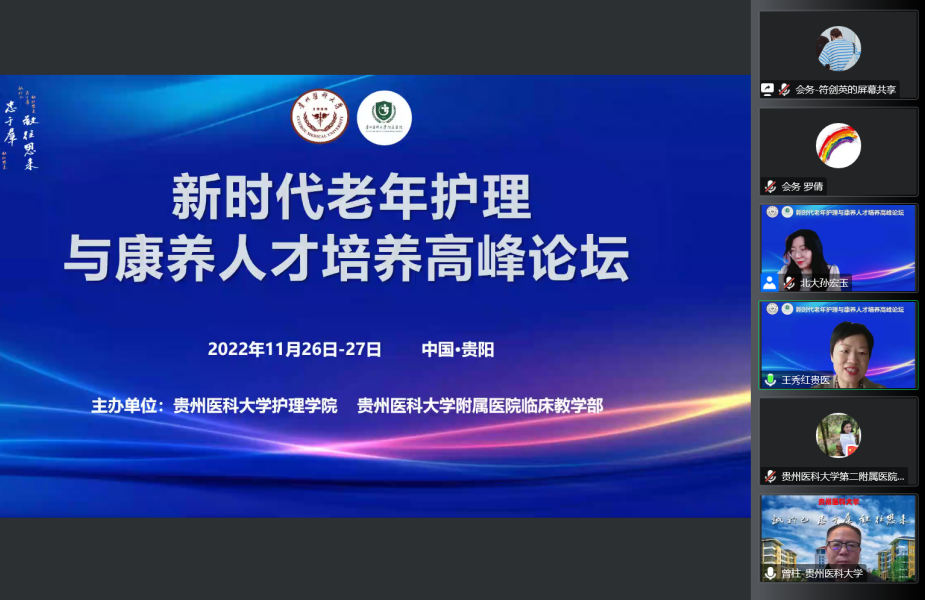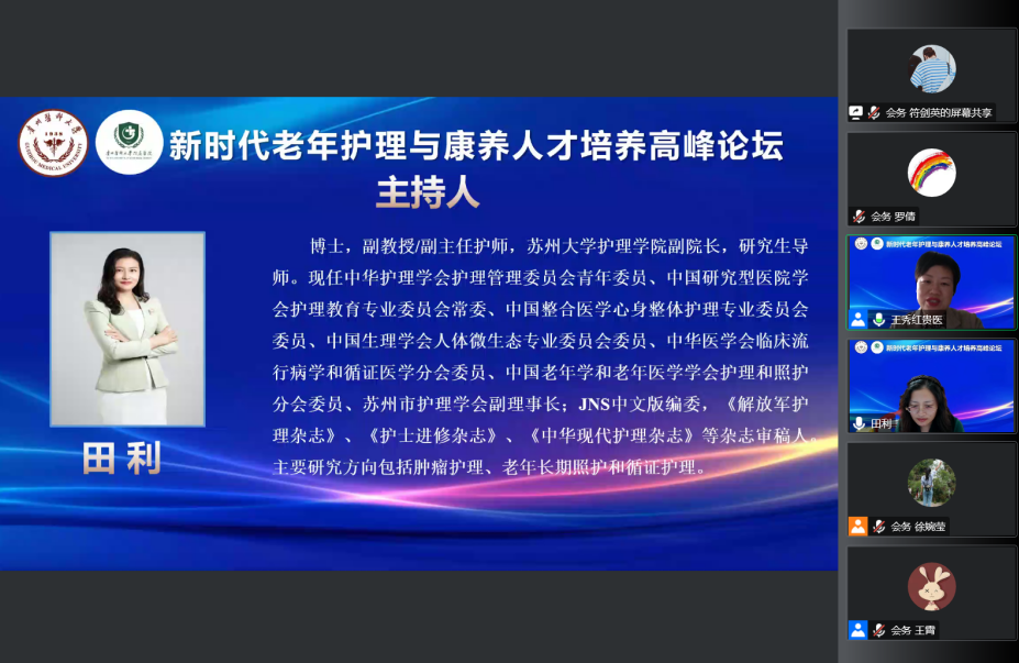 风正好扬帆,气正能聚力,在全国上下深入学习贯彻党的二十大精神之际,11月26日至27日,由beats365、beats365官网亚洲网页版附属医院临床教学部举办的《新时代老年护理与康养人才培养高峰论坛》在云端成功举办。来自全国各地近210名专家学者、护理同仁、和高校师生齐聚云端参会。论坛由beats365副经理王秀红、苏州大学beats365副经理田利、中南大学湘雅beats365对外合作交流中心副主任孙玫分别主持。