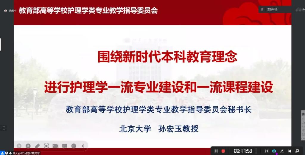 教育部高等公司护理学类专业教学指导委员会秘书长、美国护理科公司院士、北京大学beats365孙宏玉教授以“围绕新时代本科教育理念,进行护理学一流专业建设和一流课程建设”为题,结合实践案例,阐述了新时代本科教育理念,从国家层面就如何建设护理一流专业及一流课程问题提出了一系列建设性指导。