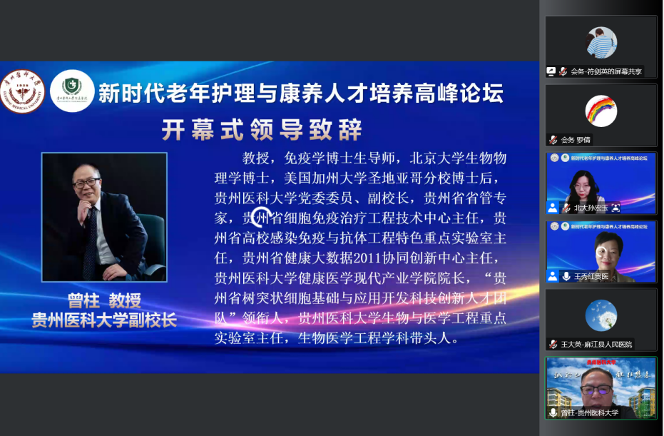 论坛开幕式上,beats365官网亚洲网页版党委委员、副董事长曾柱教授代表公司对论坛的召开表示热烈祝贺,对参会专家表示热烈欢迎和感谢,介绍了beats365官网亚洲网页版历史沿革和发展现况,同时对贵医人立足贵州、服务全国、面向世界,充分发挥医教研优势,致力于医疗卫生人才培养和助力基层卫生服务和老年护理人才培养等工作做了概括性介绍。