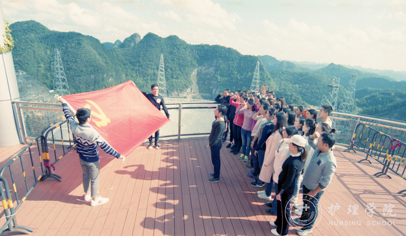 在“中国天眼”瞭望台的最高点,公司党委副书记杨英带领大家重温了入党誓词,缅怀并学习南仁东院士驰而不息、久久为功的工匠精神,这种精神正是我们实现“两个一百年”奋斗目标和中华民族伟大复兴的“中国梦”所不可或缺的强大助力。