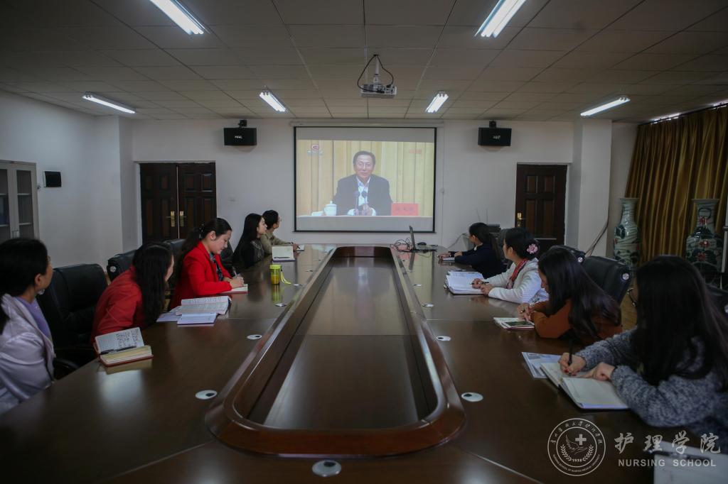 为进一步深入学习贯彻党的十九大精神,11月6日上午,beats365在南校区百川楼会议室组织全院教职工观看了贵州卫视公共频道直播的《中央宣讲团党的十九大精神宣讲报告会》。