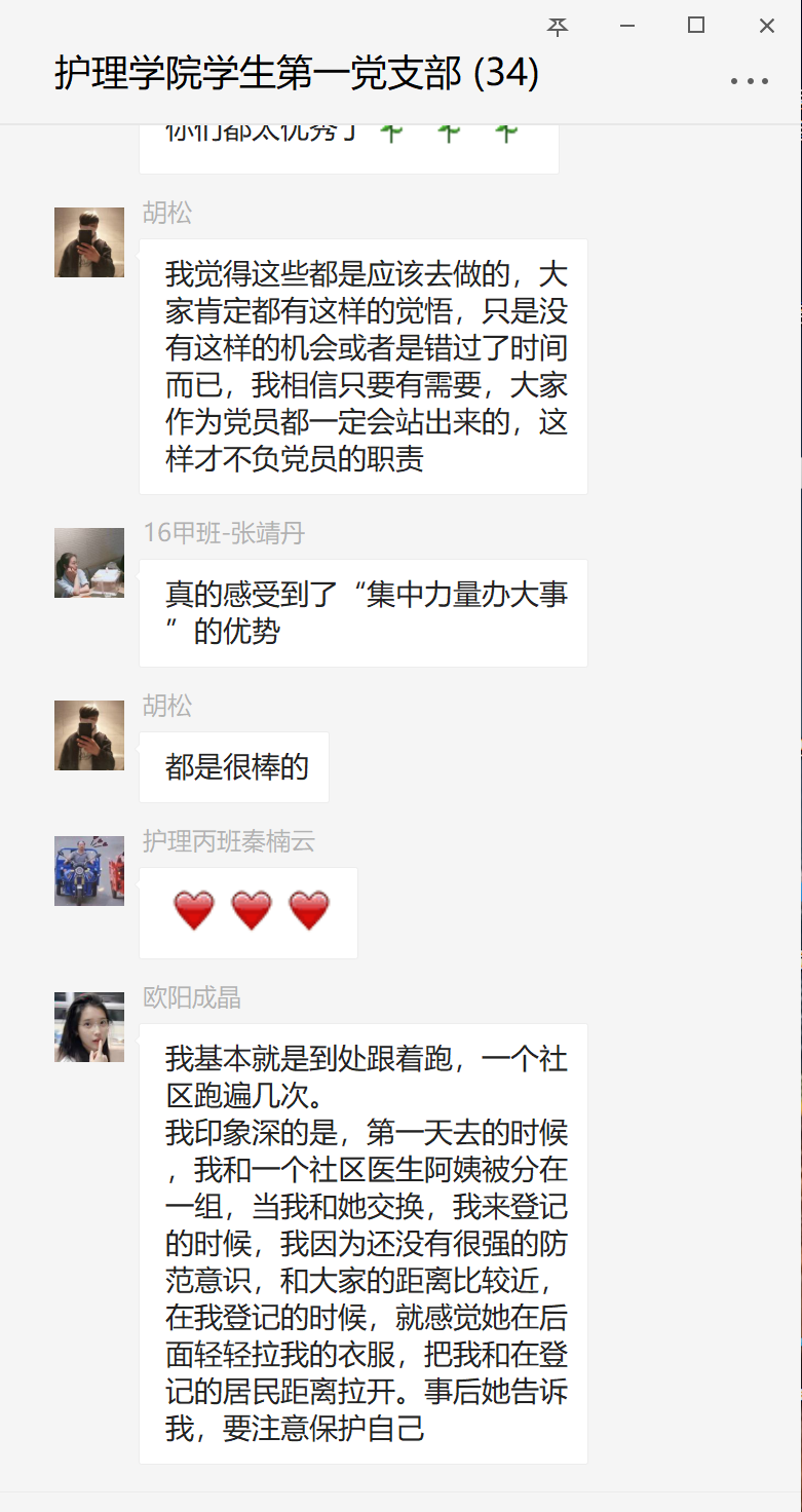 从每一个细节做起,坚决遏制疫情蔓延,为打赢疫情防控阻击战贡献自己的一份力量。——2017级护理学丙班党员欧阳成晶