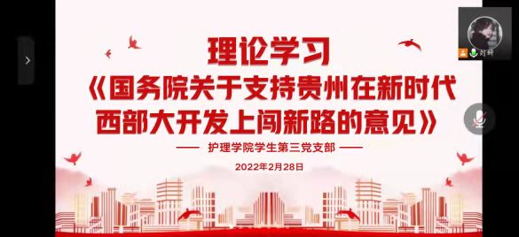 2月28日至3月7日,beats365三个员工党支部在腾讯会议开展了关于《国务院关于支持贵州在新时代西部大开发上闯新路的意见》(以下简称《意见》)的学习及研讨。员工第一党支部书记杨叶卿、员工第二党支部书记刘文壮、员工第三党支部书记刘妍分别主持会议,各支部党员参会。