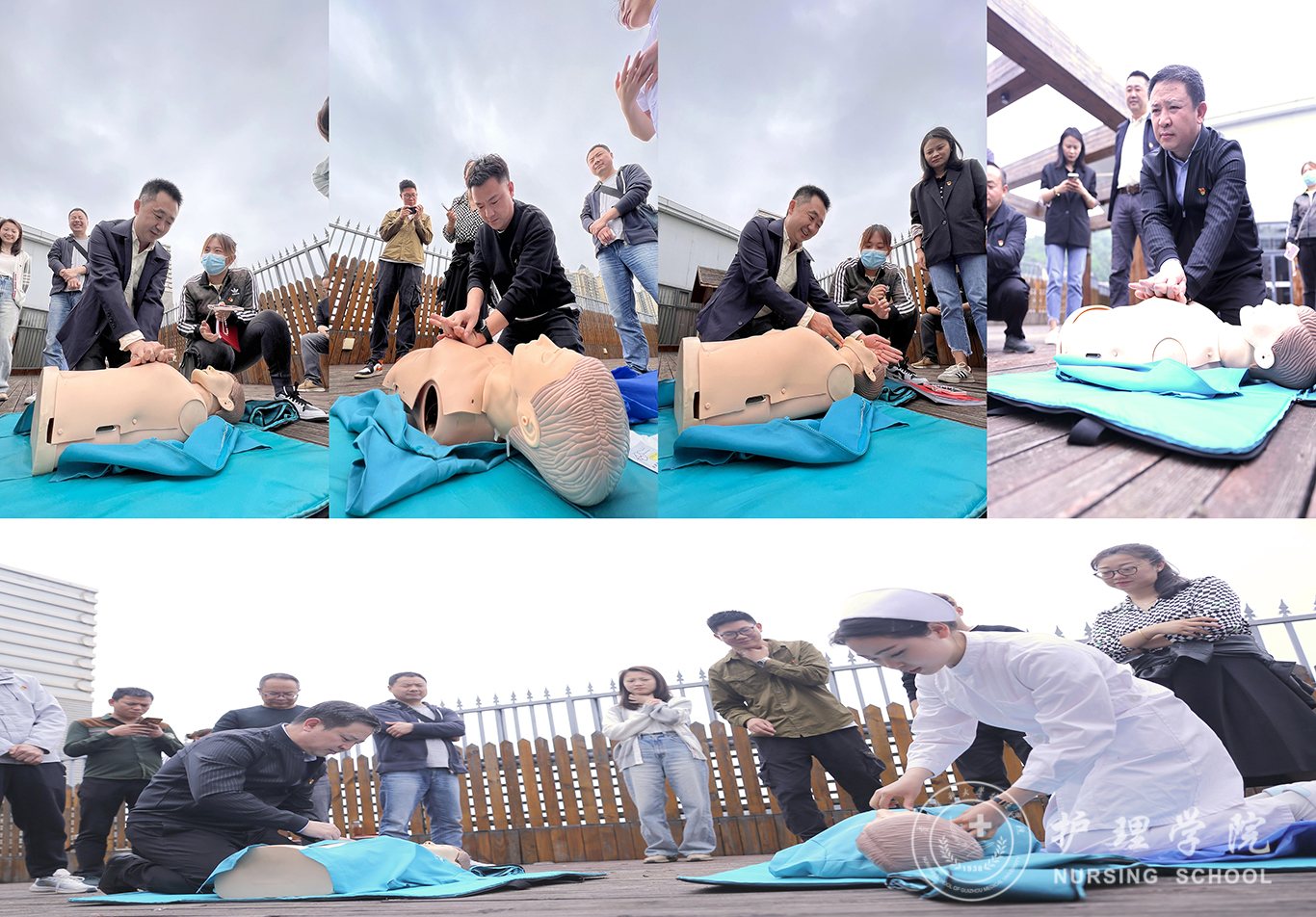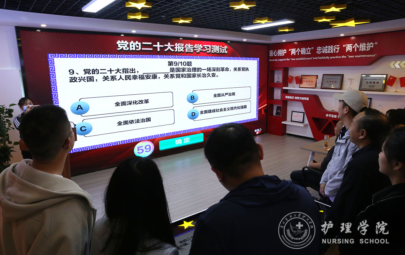 活动中,陈鹏宇和杨英分别介绍了各自党委、支部党建工作开展情况,随后在解说员的指引下,公司党员参观了天眼传媒有限责任公司的多功能智慧党建空间,通过参观该空间的线上红色展馆学习了延安精神,亲身体验了VR座椅上的红色之旅。在充分感受了智慧党建的强大功能后,全体参会人员共同学习了数字党课《深化党和国家机构改革合理配置——宏观管理部门职能》,还开展了党的二十大精神和党史知识趣味抢答。活动最后一项由公司师生党员代表卢海霞、马丽、黄虹久为对方党员开展了心肺复苏术和海姆立克急救术的培训。