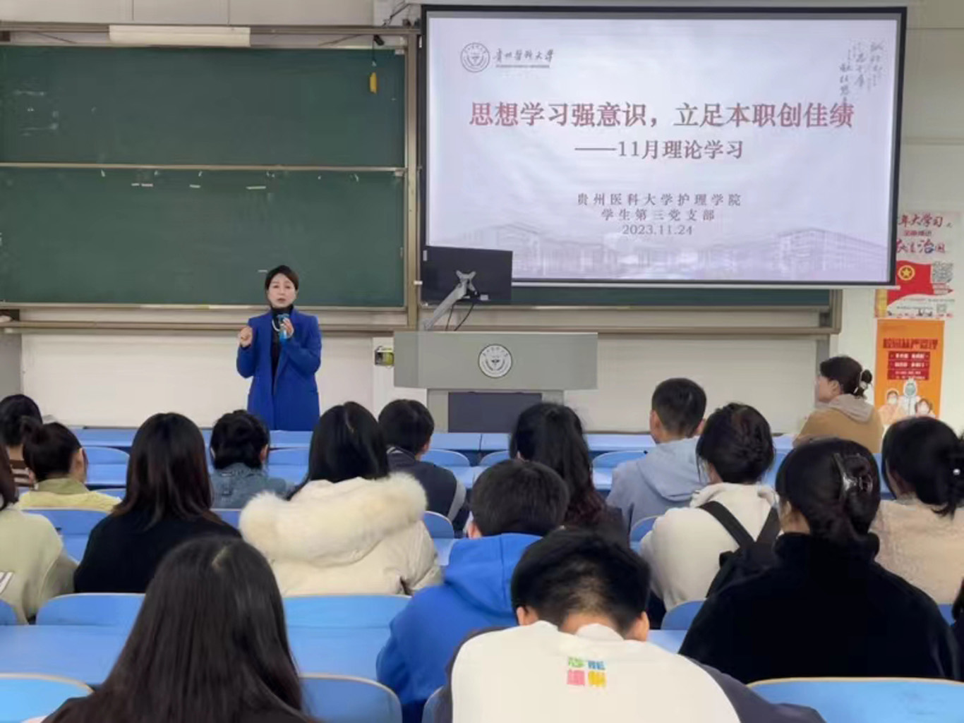 在教职工党支部活动中杨英指出,为新校区建设绿色、舒适的校园环境助力,这是每个贵医人的责任和使命,捐款活动既体现了贵医心、爱校情,也是在践行党和国家对生态文明建设的总体要求。张黎强调,此次主题活动旨在号召党员带头,以实际行动表达作为贵医人对母校的浓烈热爱之情。