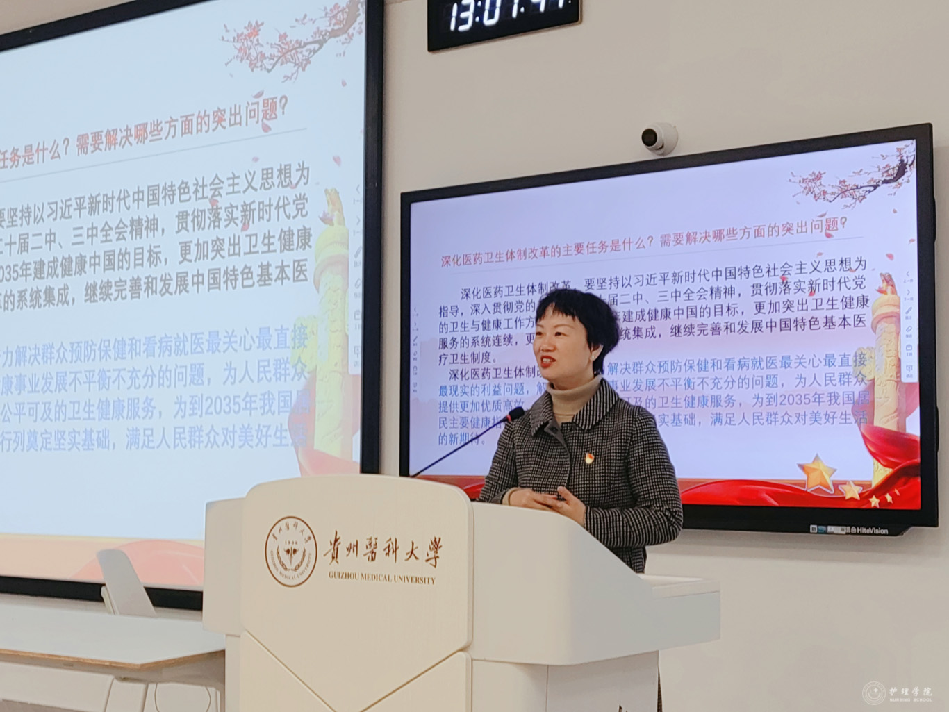 课上,王秀红副经理紧扣护理专业实际,对“深化医药卫生体制改革”的7项措施展开细致解读。她指出,健康与社会民生各个层面紧密相连,作为护理专业的研究生,未来是守护健康一线的主力军,深化医改要以习近平新时代中国特色社会主义思想为指引,贯彻落实相关会议精神与卫生工作方针,朝着2035年建成健康中国目标奋进。在日常护理工作中,强化服务连续性、改革集成性,助力完善基本医疗卫生制度是关键。尤其是要聚焦群众在预防保健、就医过程中的迫切诉求,利用所学专业知识,着力攻克卫健事业发展中城乡、区域护理资源不均衡等问题。