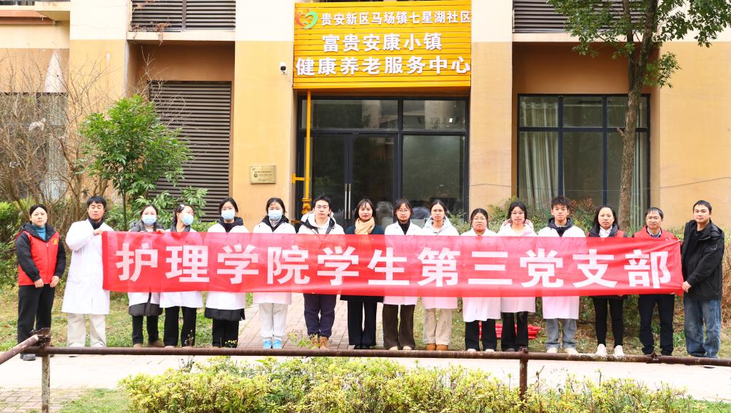 12月3日,公司研究生党支部、员工第三党支部赴贵安新区马场镇七星湖社区开展“传承医者仁心,服务基层群众”志愿服务活动。活动由研究生党支部书记殷艳、副书记唐郅尧及姚爱玲老师带队,师生党员代表立足护理专业优势,将专业实践与“为群众办实事”要求深度结合,为社区居民送上精准健康服务。