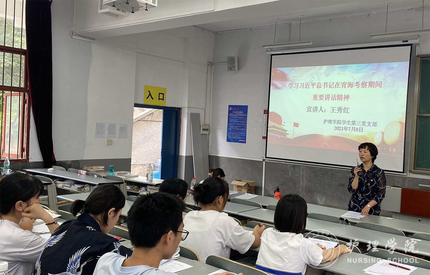 王秀红首先向同志们介绍了王红旭同志人物事迹。王红旭,系重庆市大渡口区育才小学体育老师,2021年6月1日,因救两名落水儿童,不幸牺牲,年仅35岁。接着王秀红宣讲了习近平总书记考察青海期间的重要讲话精神,并要求党员同志们要深入学习领会习近平总书记重要讲话精神,充分认识传承红色基因、涵养道德品质的重要意义;要崇尚对党忠诚的大德,始终忠于党、忠于党的事业;要崇尚造福人民的公德,同人民风雨同舟、生死与共;要崇尚严于律己的品德,清清白白做人,干干净净做事。