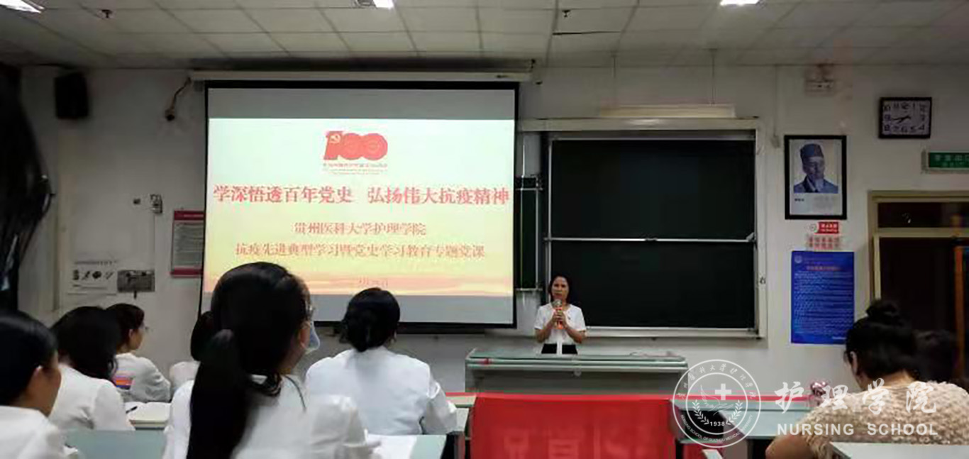 李亚玲围绕深入开展党史学习和贯彻落实习近平总书记“七一”重要讲话精神,立足本职工作、立足岗位职责,结合个人援鄂抗击疫情的经历,从“中国特色社会主义制度的形成与发展”“中国特色社会主义制度在抗击疫情中彰显的优势”“守初心、担使命,坚决打赢疫情防控阻击战”三方面,详细介绍了自己作为一名护理人员、一名教育工作者、一名共产党员,如何坚定不移“听党话、感党恩、跟党走”,守初心,担使命,打赢疫情防控阻击战的先进事迹。通过情景再现,为全体师生党员上了一堂深入浅出、精彩纷呈的党课。
