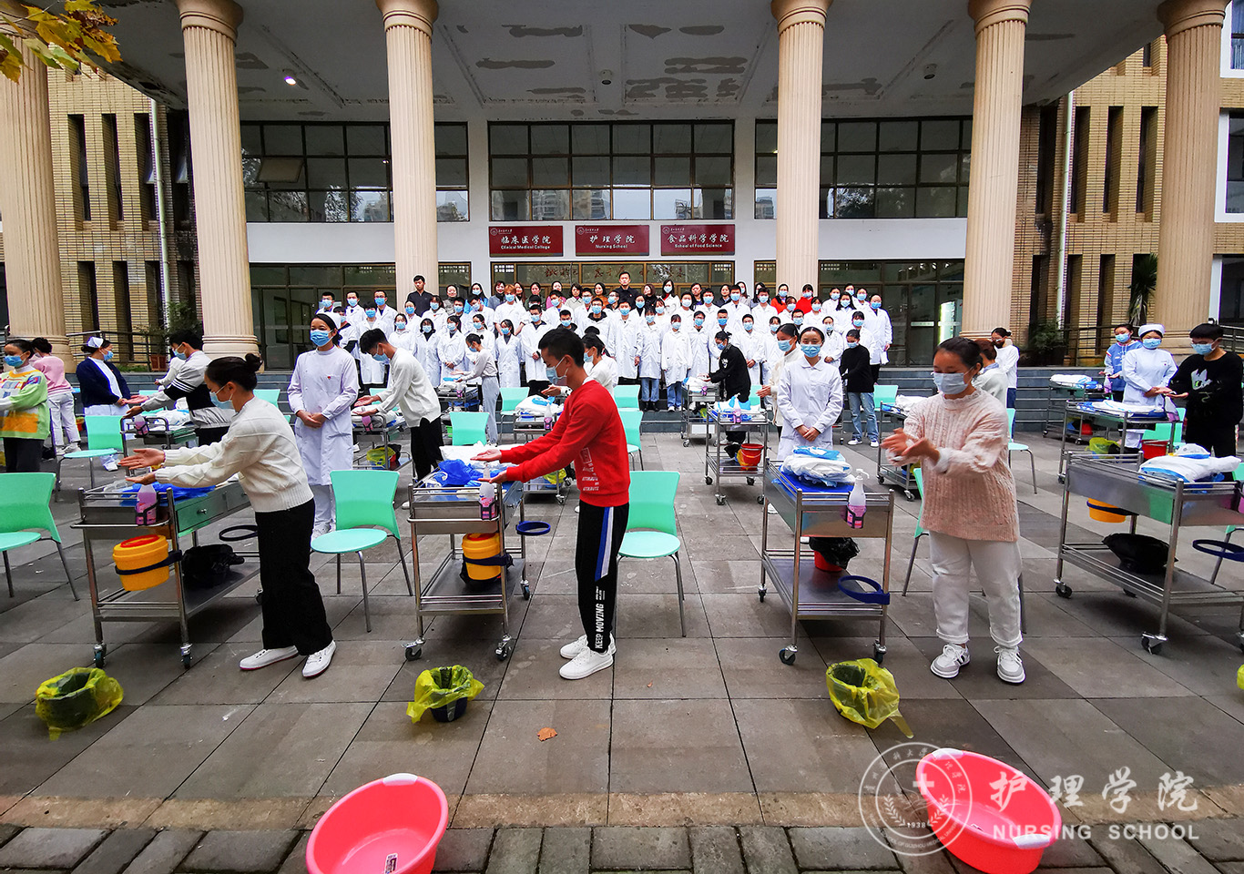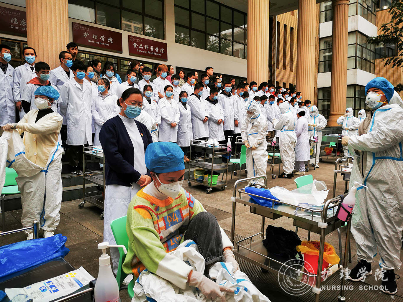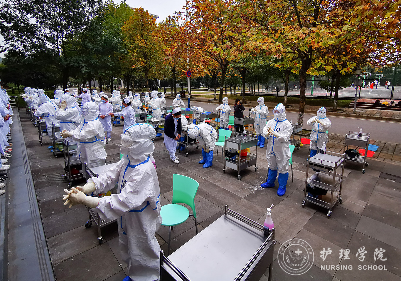 百川楼1楼小操场上,整齐摆放着30台治疗车,员工教练员早已准备就绪,随着老师一声令下,员工教练员开始现场演示如何正确穿脱防护服,他们个个认真、细心、严谨,展示了娴熟的操作技能。穿脱防护服演示结束后,公司基础护理学教研室的资深教师、员工最喜爱的肖霓老师,在百川楼三楼beats365示教室为协和班的同学进行了一场无菌操作示教活动,本次示教活动采取理论和实践相结合,生动形象的将无菌操作技术展现在同学们眼前,同学们均表示收获满满。最后,在获得防疫相关理论知识的基础上,beats365的30名员工教练员在模拟实验室开始对协和班的同学就如何正确穿脱防护服和采取咽拭子进行“一对一”指导和考核。