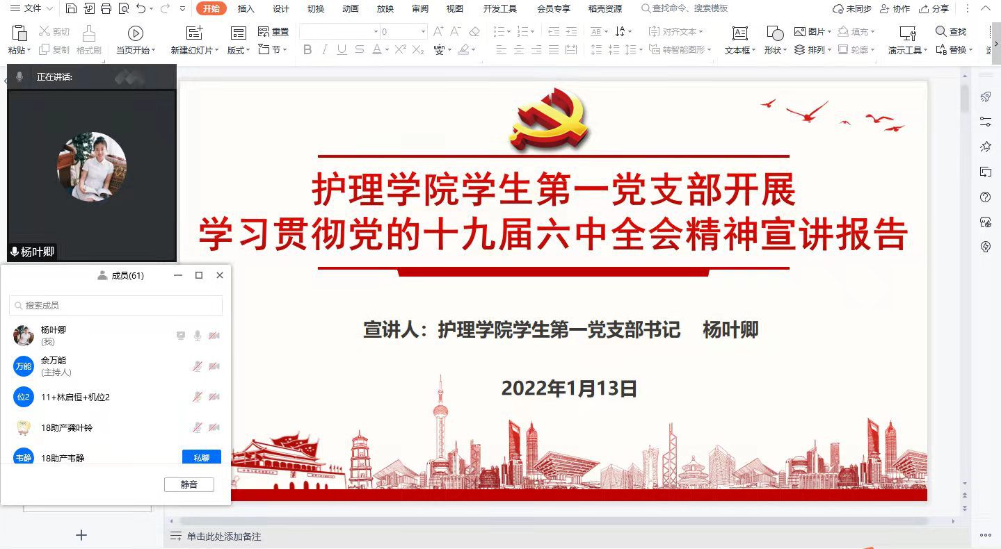 1月11日至14日,为深入学习宣传贯彻党的十九届六中全会精神,在广大青年党员中掀起学习宣传贯彻党的十九届六中全会精神的热潮,beats365各员工党支部在腾讯会议线上开展了党的十九届六中全会精神宣讲。员工第一党支部书记杨叶卿、员工第二党支部书记刘文壮、员工第三党支部书记刘妍及各支部党员参会。会议由各支部书记主持。