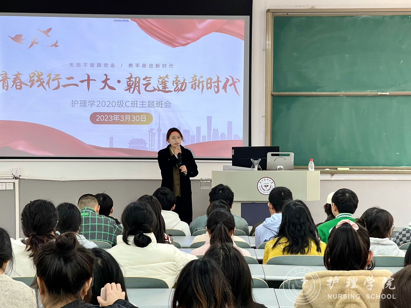 3月30日,为深入学习宣传贯彻党的二十大精神,强化思想引领,聚焦立德树人根本任务。公司党委委员、副处级组织员张黎到护理学2020级C班开展了“青春践行二十大,朝气蓬勃新时代”主题班会活动,会议由辅导员刘妍主持,班级全体同学参与。