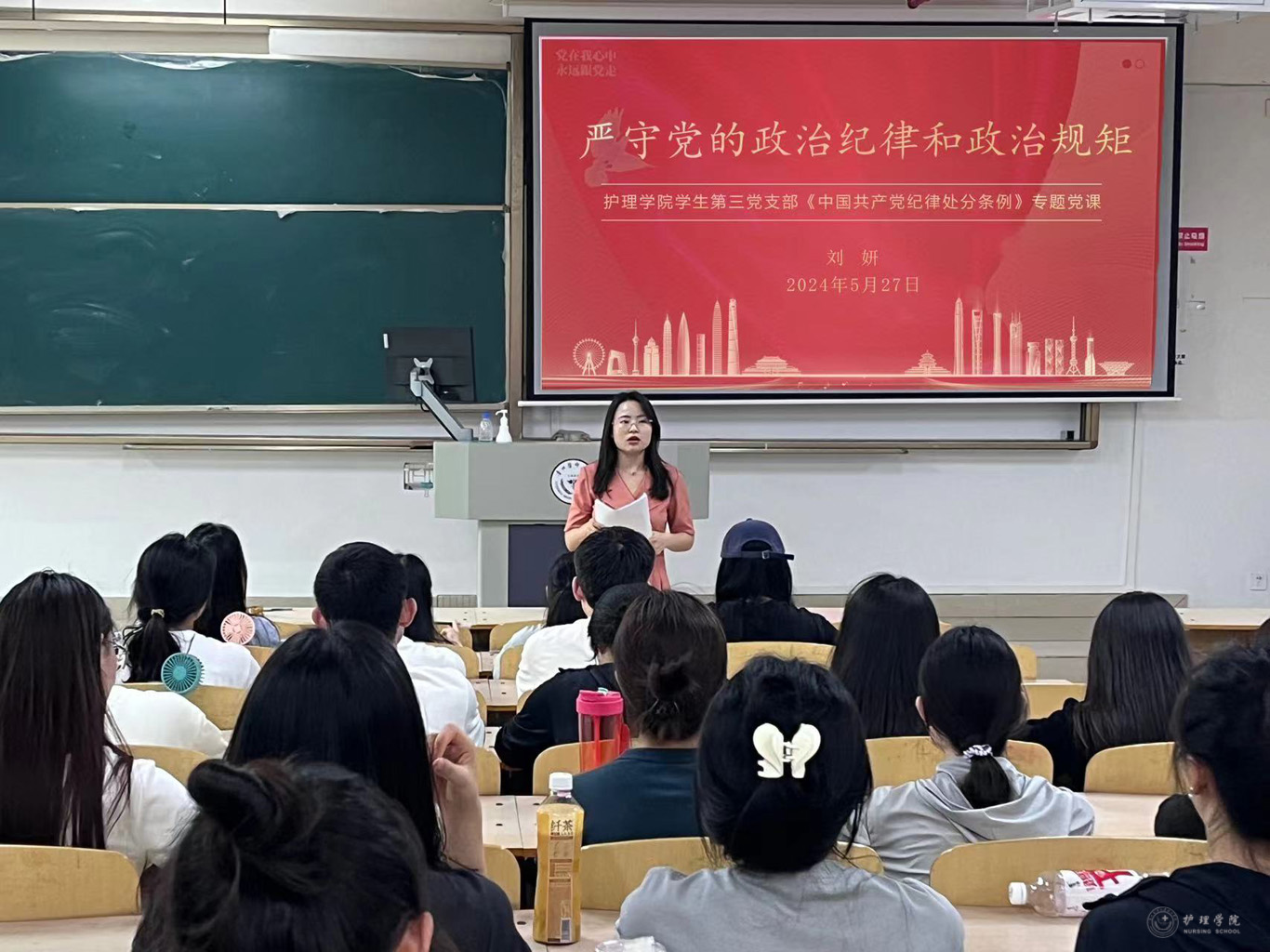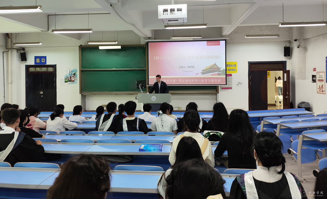 公司副处级组织员张黎,教职工党支部书记张仁莉,员工党支部书记梁子豪、刘文壮、刘妍分别以《学习贯彻<条例>争当明纪守纪模范》《学习<条例>遵守纪律行稳致远》《深化党纪学习教育,筑牢忠诚纪律防线》《激浊扬清守正气踔厉奋发向未来》《严守党的政治纪律和政治规矩》为主题为各支部党员讲授纪律党课。
