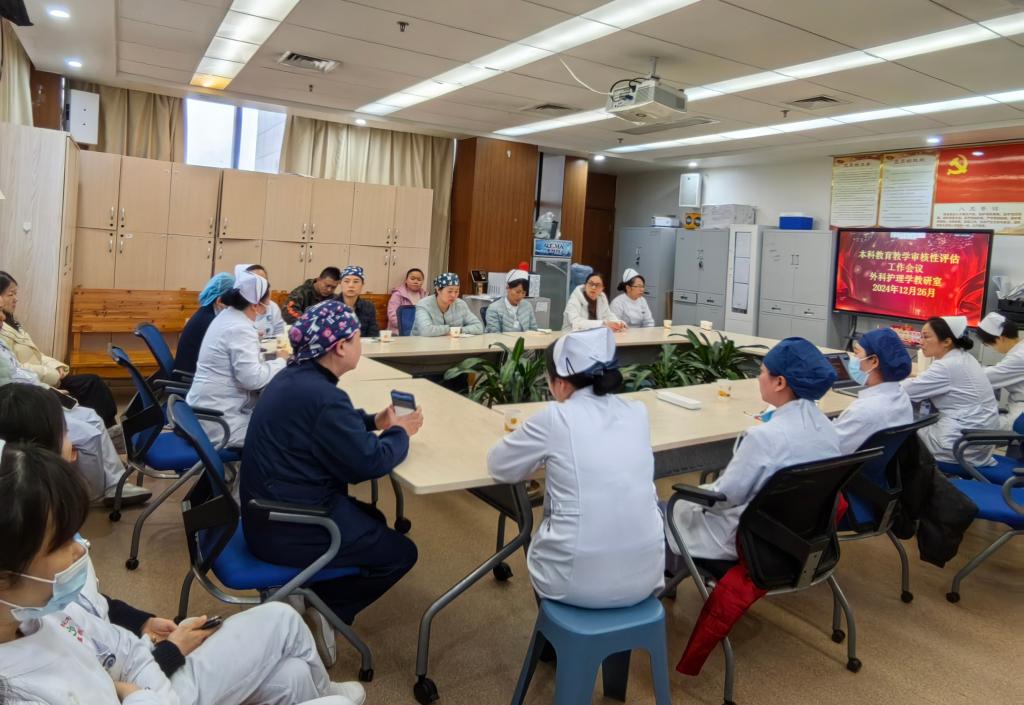 12月26日,为了全面回顾和总结本学期外科护理学教研室教学工作以及传达新一轮本科公司产品审核评估的重要性和内容,明确改进方向和目标,提升教学质量与管理水平,外科护理学教研室在beats365官网亚洲网页版附属医院泌尿外科16楼学习室进行了2024-2025学年第一学期教学总结及本科公司产品审核评估工作会议,会议由外科护理学教研室主任韩樱主持,教研室全体教师参加了会议。首先,外科护理学教研室副主任乔筠对本学期教研室承担的教学工作、取得的主要成绩以及存在的不足等方面进行了汇报,参会人员就会议中提到的各种问题进行了反馈和讨论,共同商讨解决方案。