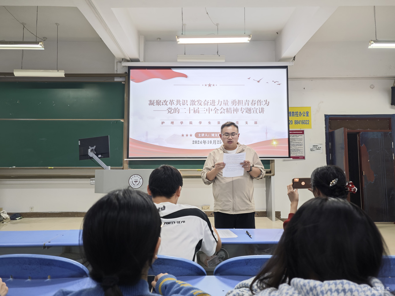 各党支部书记主要围绕“深刻认识进一步全面深化改革的重要意义、准确把握进一步全面深化改革的丰富内涵、以深化改革推动高公司党建工作高质量发展”等方面,分别以《从黑神话·悟空的爆火中领悟三中全会精神》《凝聚改革共识激发奋进力量勇担青春作为》等主题,深入解读了全会精神的丰富内涵和实践要求,引领全体师生党员自觉将全会精神融于心、铸于魂、践于行。